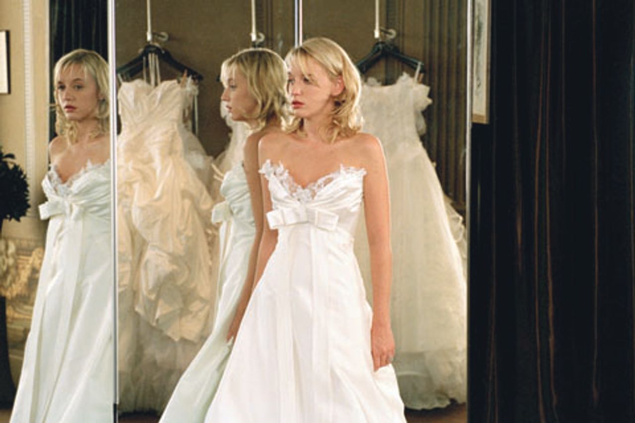 In place of Evelyn Nesbit, Chabrol gives us Gabrielle Snow (Ludivine Sagnier), a TV weather girl pursued by two rival suitors: author Charles Saint-Denis (François Berléand) and Paul Gaudens (Benoît Magimel), the heir to the Gaudens Labs fortune. Snow is introduced in close-up as she presents a weather forecast surrounded by the bright emptiness of a green-screen. The entrance of Snow in front of the green-screen, "out of context," as it were, foreshadows the way in which she will be treated by Saint-Denis and Paul. Paul, in particular, views Snow as an ideal that she can't possibly live up to. His assumptions about her, his hopes as to who she is or can be to him, supply the "context" by which he will come to love and then judge and betray her. He never truly wants her as she is.