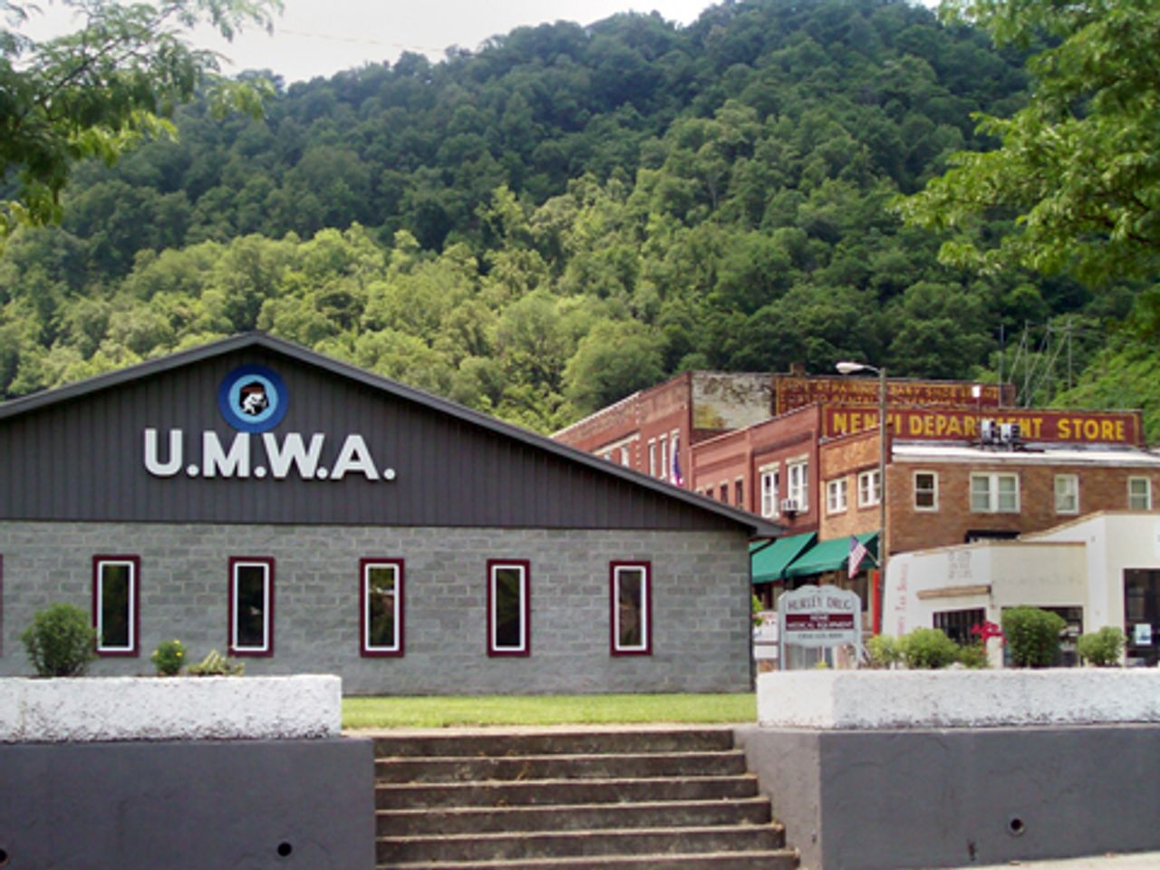 UMWA building in MatewanThe town is dominated on one end by a large United Mine Workers of America (UMWA) building. Considered alongside the conditions that surround it and the stories of the people who live there, one might say the UMWA building stands as a monument to that organization’s betrayals of the workers in the region.