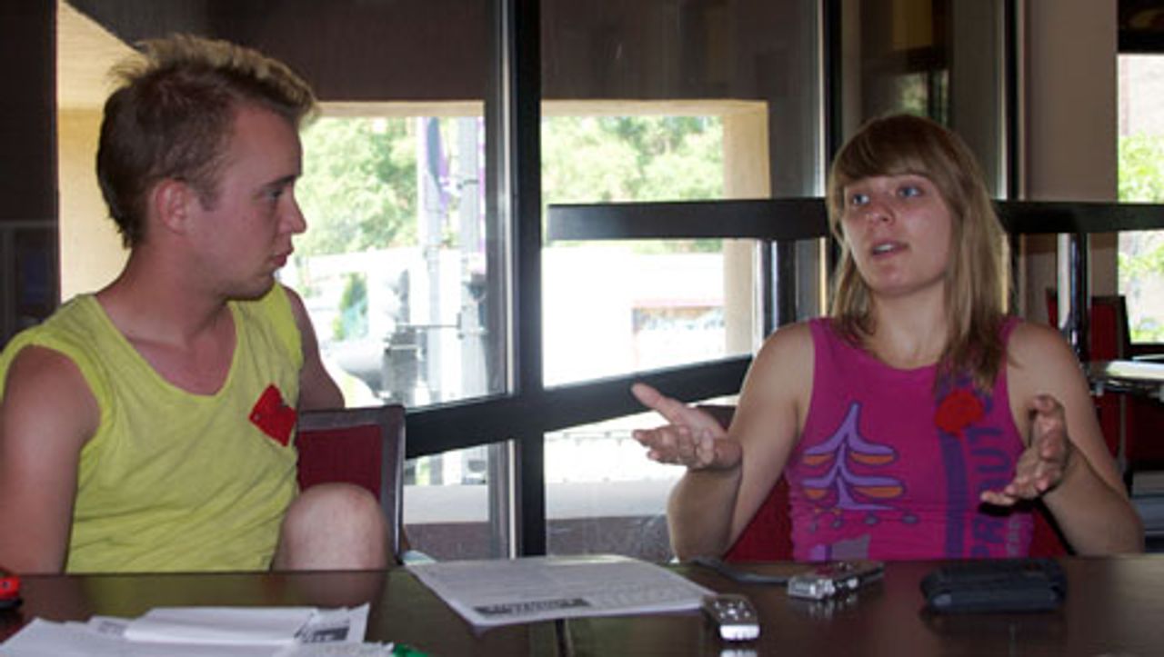 CLASSEJeanne Reynolds speaks to the WSWS with another CLASSE representative (left)