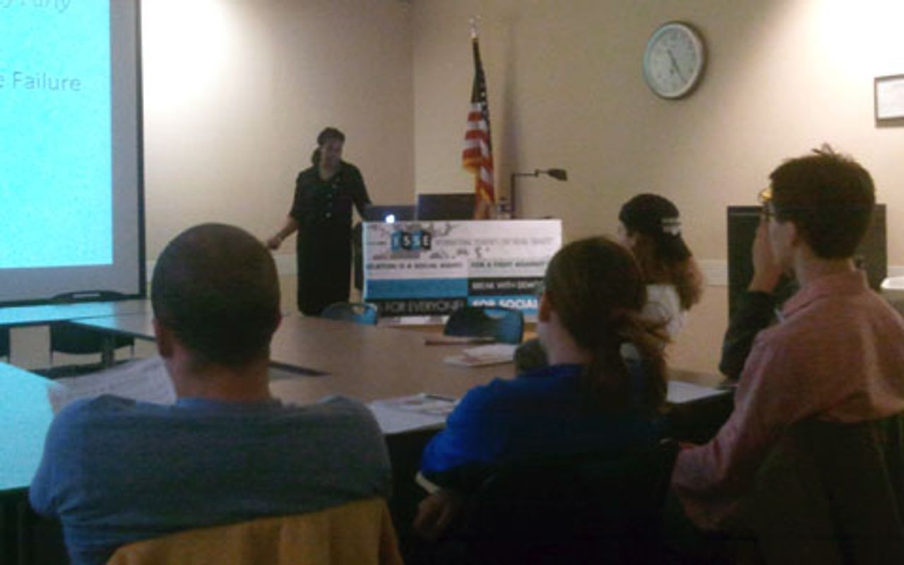 Phyllis Scherrer, vice presidential candidate for the Socialist Equality Party, spoke to a meeting Wednesday night at Tompkins County Public Library in Ithaca, New York. She focused her address on the questions the second presidential debate did not raise. The meeting was attended by workers and youth from the area as well as students from Cornell University and Ithaca College.