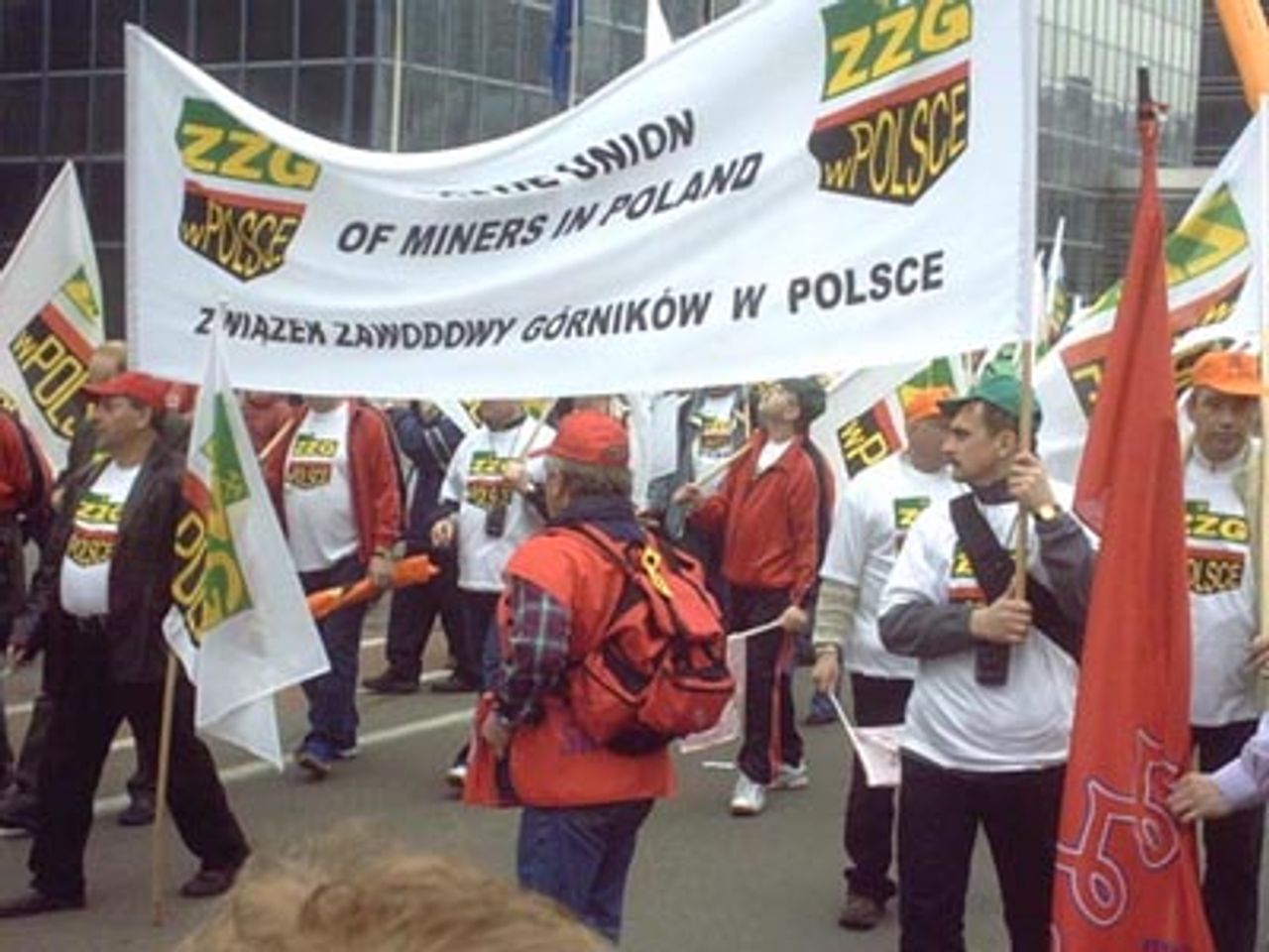 Polnische Bergarbeiter auf der Brüsseler Demonstration