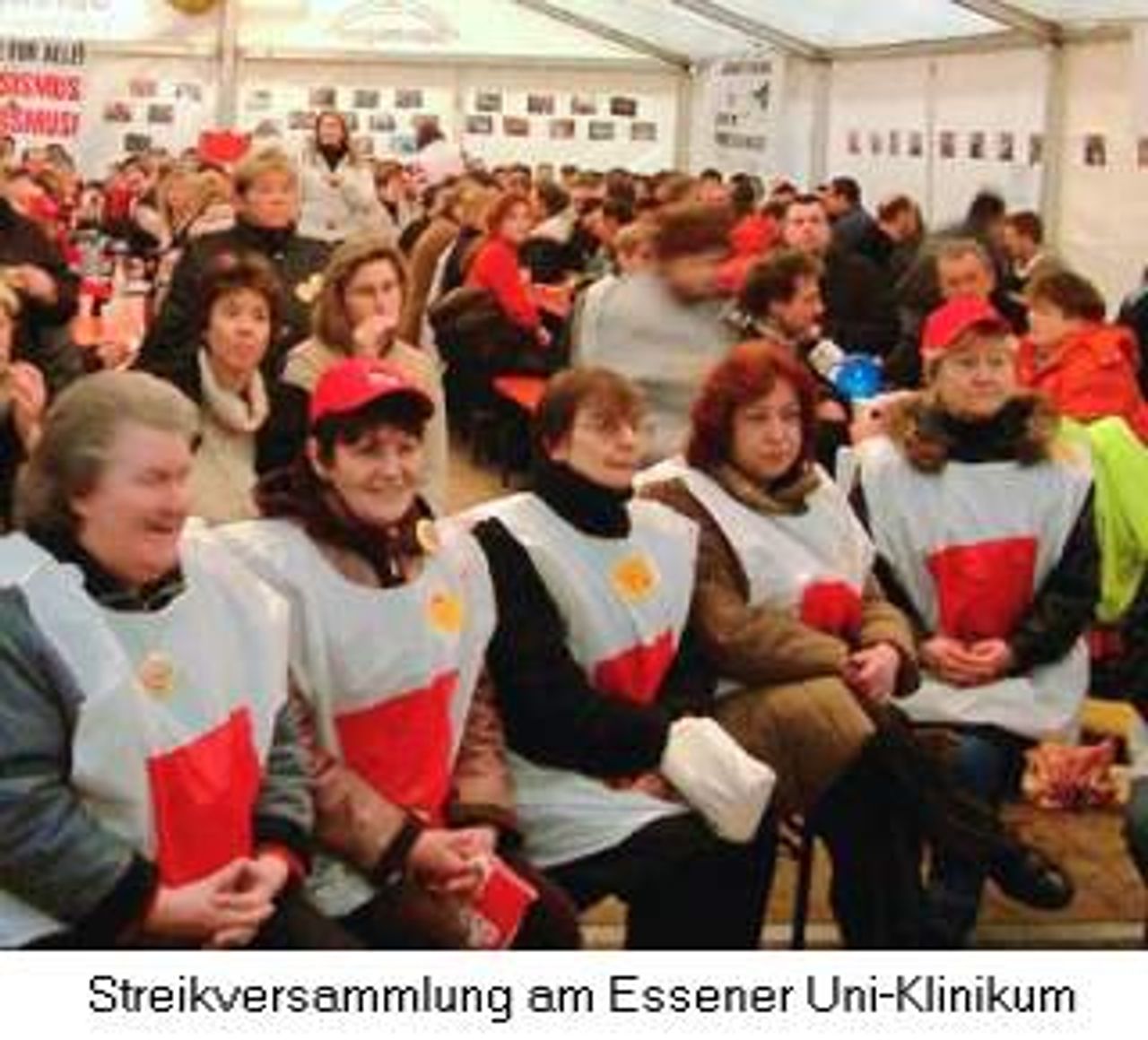 Von insgesamt über 5.000 Beschäftigten am Uni-Klinikum Essen sind 3.100 zum Streik aufgerufen. Neben den Ärzten, die sich nicht am Ausstand beteiligten, waren auch die meisten Pfleger und Krankenschwestern zwar gewillt, aber nicht berechtigt, am Streik teilzunehmen. Fast drei Viertel der rund 1.500 Krankenschwestern und -pfleger sind über die so genannte "DRK Schwesternschaft Essen e. V." des Deutschen Roten Kreuzes (DRK) "beschäftigt". Sie haben als "Vereinsmitglieder" laut Gastmeier keinerlei Arbeitnehmerrechte und sind daher gar nicht erst zum Streik aufgerufen worden. Diese Besonderheit der Uni-Klinik in Essen geht auf den Anfang des letzten Jahrhunderts zurück, als die jetzige Uni-Klinik als "Städtische Krankenanstalten" gegründet wurde.