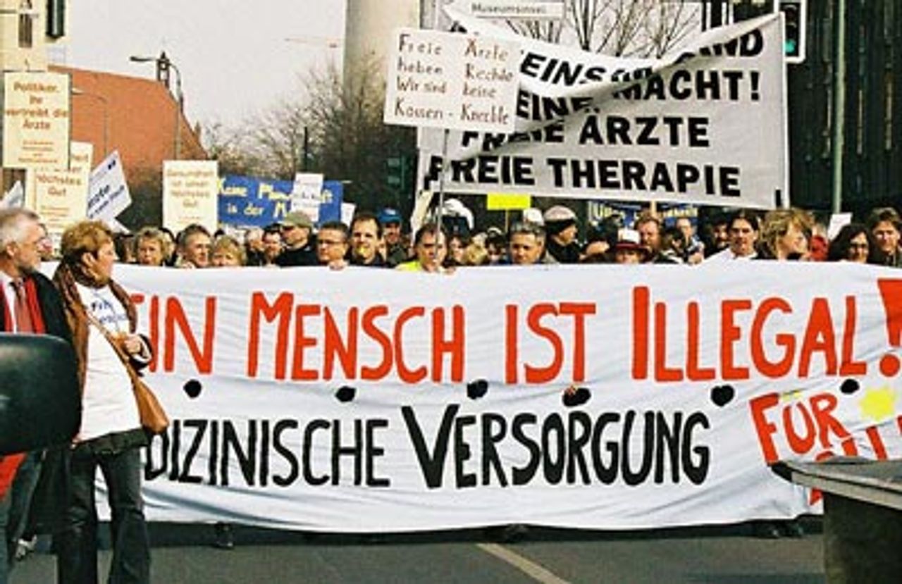 Mit Trillerpfeifen, Rasseln und Plakaten demonstrierten gestern etwa 30.000 niedergelassene Ärzte und Arzthelferinnen in Berlin gegen die Auswirkungen der Gesundheitsreformen auf die Praxen und die Krankenversorgung. Zu der Demonstration hatte ein Bündnis von 50 Ärzte-Verbänden niedergelassener Ärzte aufgerufen. Darunter befanden sich die beiden wichtigsten Verbände Hartmann-Bund und NAV-Virchow-Bund.