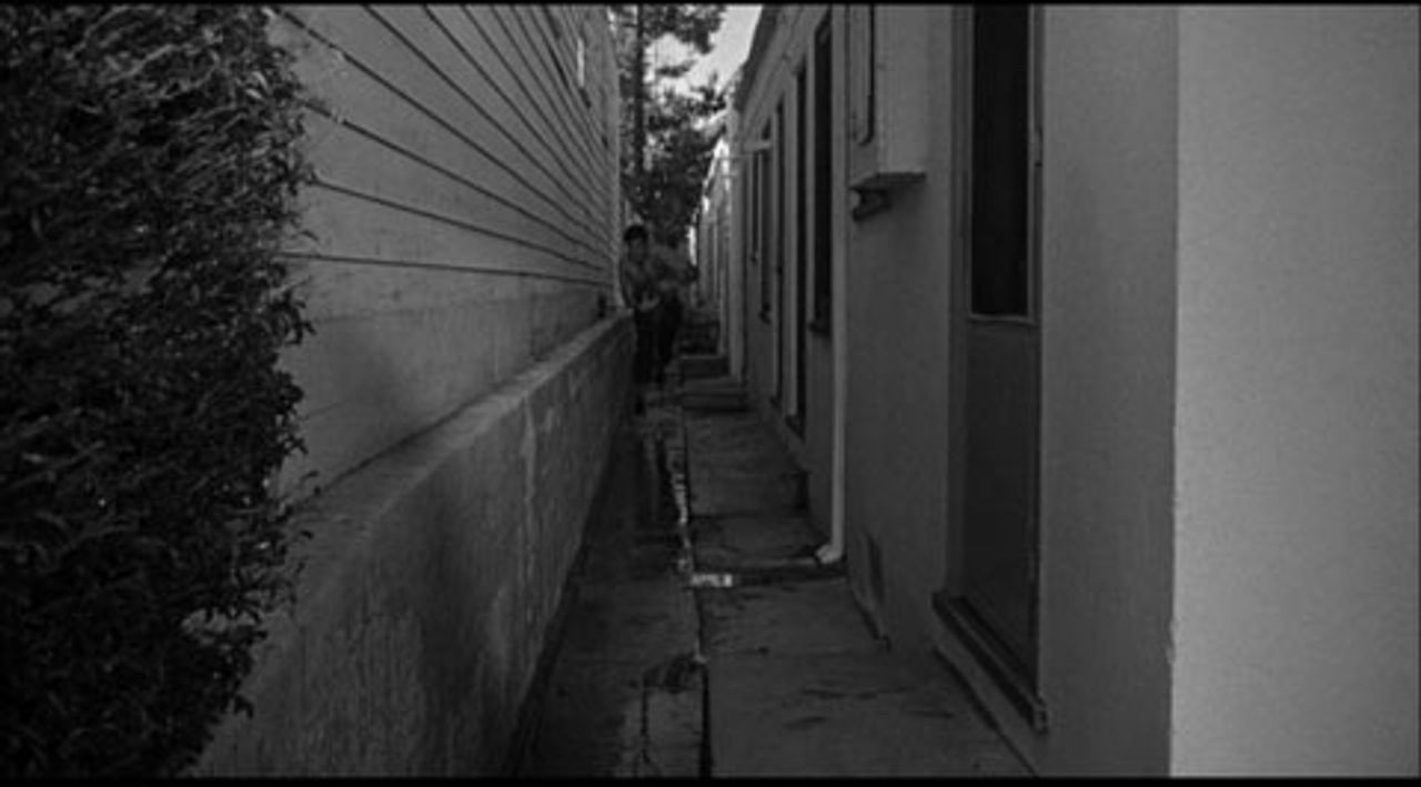 City of Fear’s strongest point may be Lucien Ballard’s cinematography (among a long list of credits, he shot The Wild Bunch, The Caretakers, and the acclaimed documentary, Aruza). Filmed on location in the crisp black-and-white documentary style of the better television police dramas of the era, City of Fear features rear and frontal shots as the desperate, dying Ryker drives across LA, creating a sense of panic and entrapment within the audience. Extreme close-up shots also become more frequent as the movie reaches its climax.