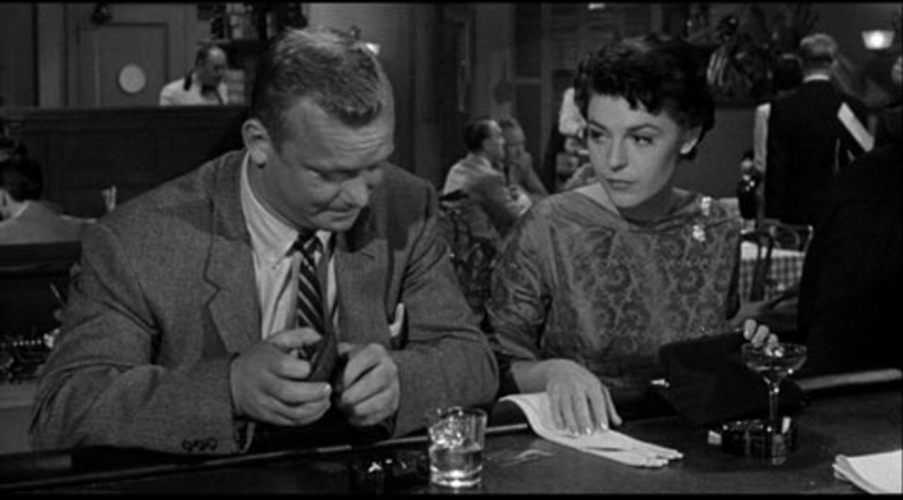 Vicki’s physical charms and aura of danger—Jeff vacillates between a fevered attraction to her and a growing suspicion that she’s exploiting him to get back at Carl for exploiting her—pulls him away from the safe, predictable world represented by a woman who’s very much in love with him, Vera Simmons (Diane DeLaire), daughter of his co-worker and friend Alec Simmons (Edgar Buchanan). The resolution of this conflict is effectively ambiguous.