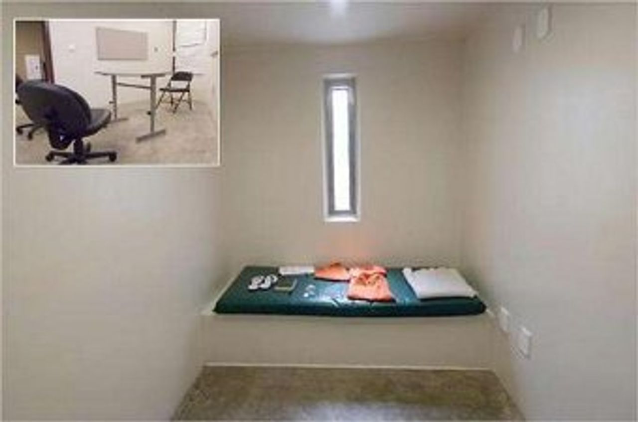 David Hicks's cell in Camp EchoInset is the prisoners' reading room, without any books