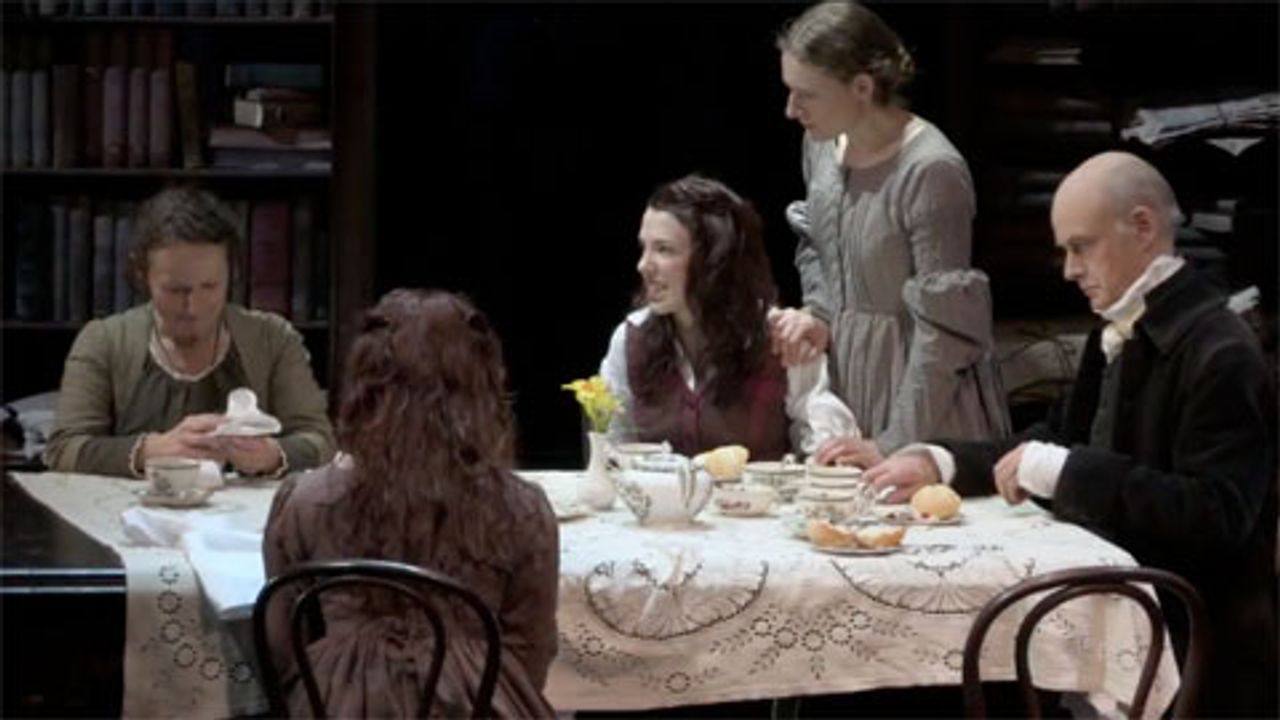 When Edmundson’s play begins, this somewhat dysfunctional family is living above Godwin’s shop on Skinner Street in London, where he (played by William Chubb) and his second wife (Sadie Shimmin) are unsuccessfully attempting to establish a business publishing children’s books.