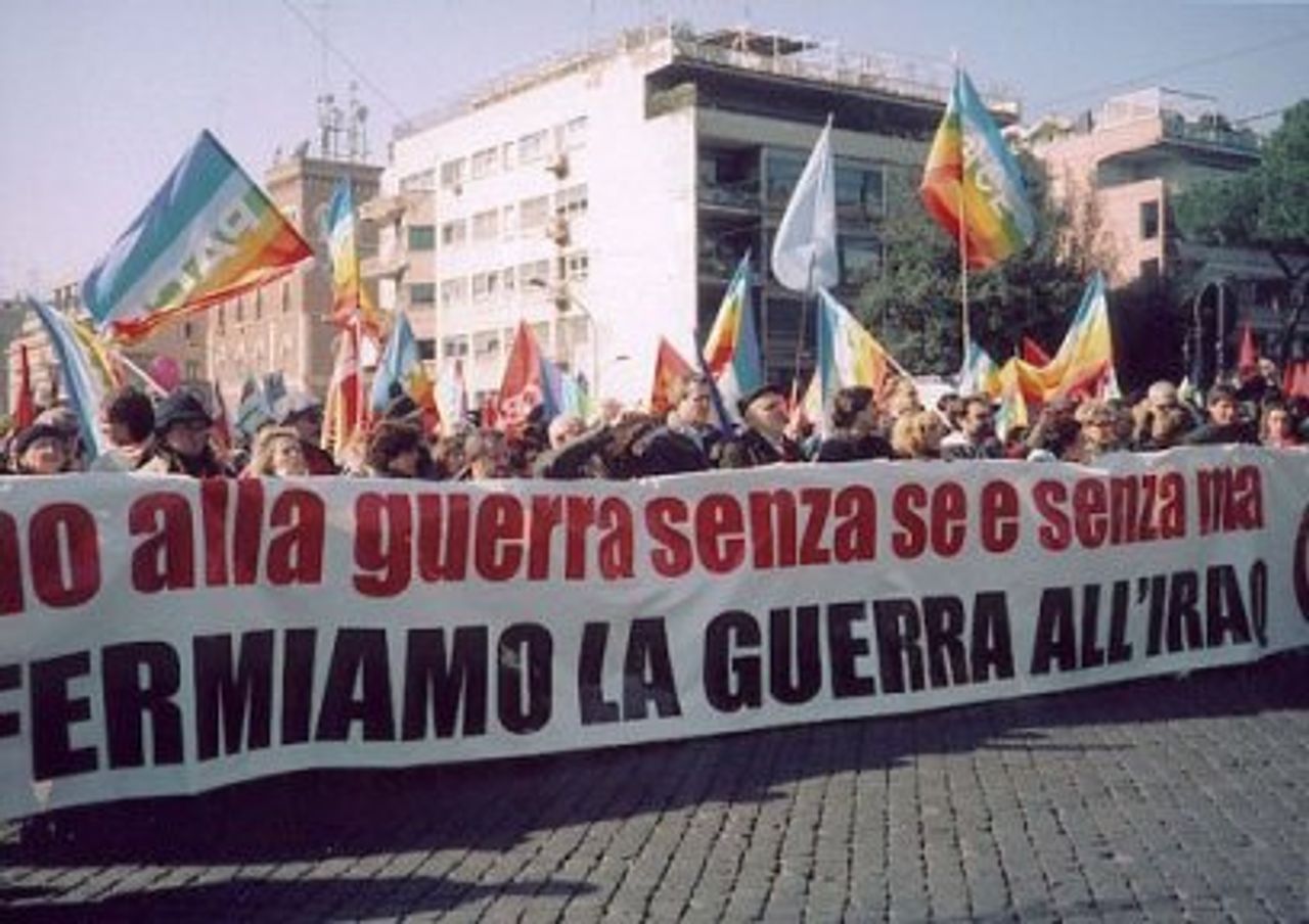 Der Hauptslogan lautete: "No alla guerra, senza se senza ma" (Nein zum Krieg ohne Wenn und Aber) und sollte die Ablehnung eines Kriegs sowohl mit als auch ohne UNO-Mandat ausdrücken. Die gemäßigteren Parteien, besonders die DS, aber auch die CGIL, waren schnell bei der Hand mit dem Zusatz: "No al terrorismo" (Nein zum Terrorismus), und ihre Führer forderten die Entwaffnung des Irak.