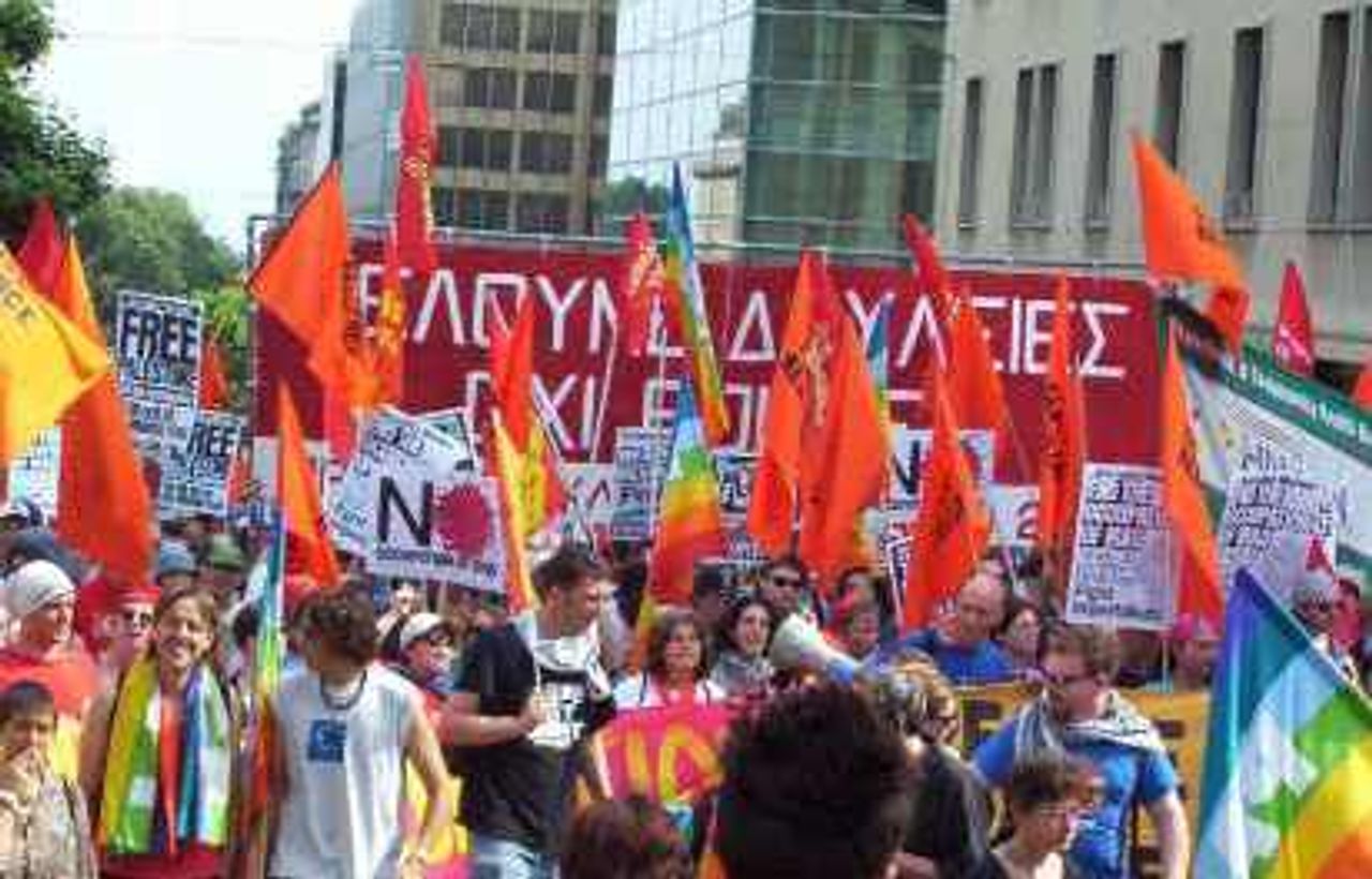 Viele Slogans richteten sich gegen den Irakkrieg mit Texten wie "Stop the war", "Schluss mit der Besetzung des Iraks!", "Das Recht gegen die Gewalt". Andere Aufschriften waren allgemeiner Art wie: "Schafft den Kapitalismus ab und ersetzt ihn durch was Netteres!", "Hitler, Stalin, Dollar - wir brauchen keine Diktaturen", "Die Macht den Bürgern und nicht den Finanzmärkten".