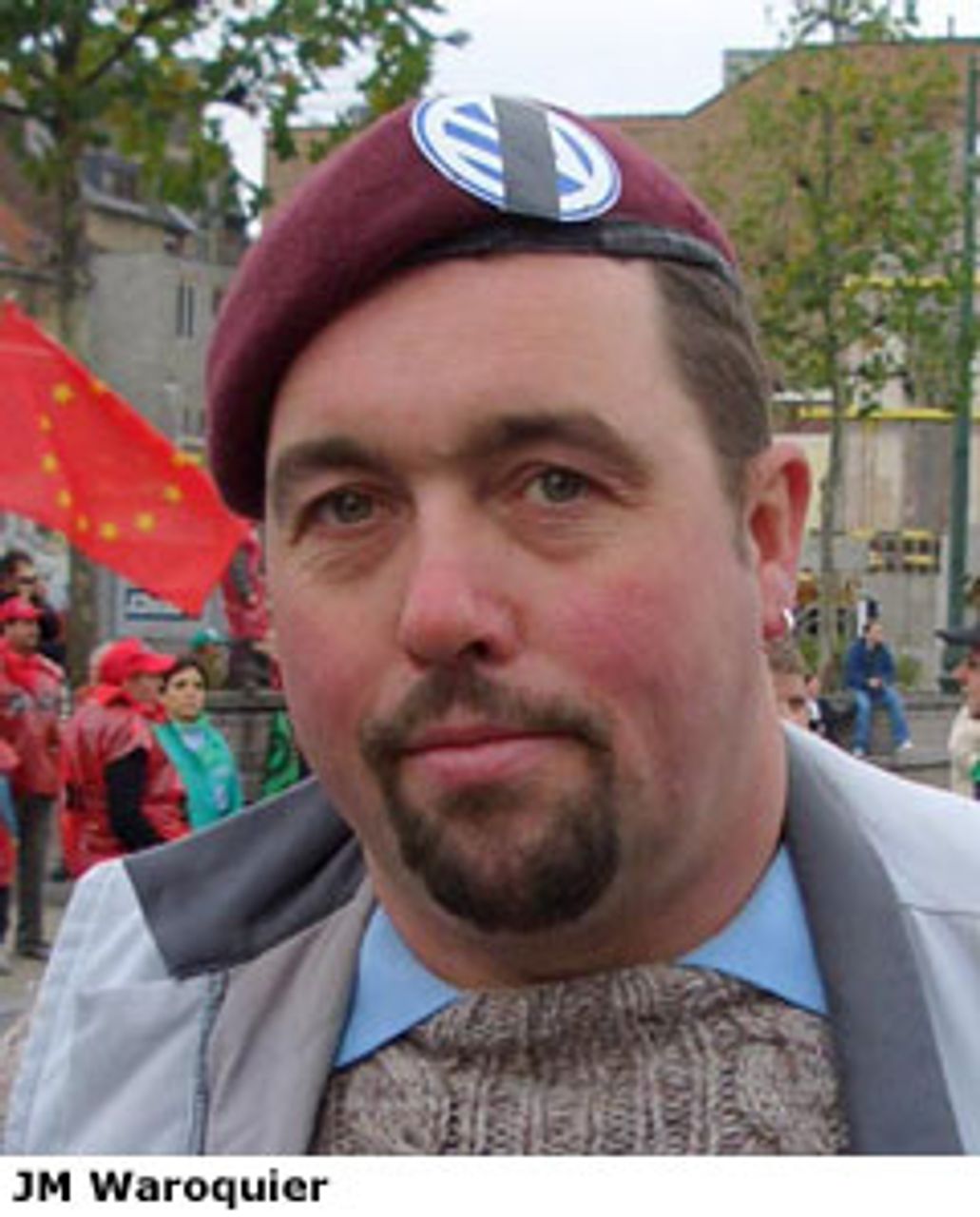J. M. Waroquier: "Ich bin selbst VW-Arbeiter aus dem Werk in Forest, ich arbeite im Blechwalzwerk: Dort sind wir zu 99 Prozent sicher, unsere Arbeit zu verlieren. Vor knapp zwei Wochen haben wir zum erstenmal erfahren, was für eine soziale Katastrophe da auf uns zukommt. Wir hoffen, dass die Gewerkschaften ihre Sache gut machen. Für uns ist es schwer, objektiv zu beurteilen, was sie eigentlich machen, denn es wird ja immer alles geheim gehalten."