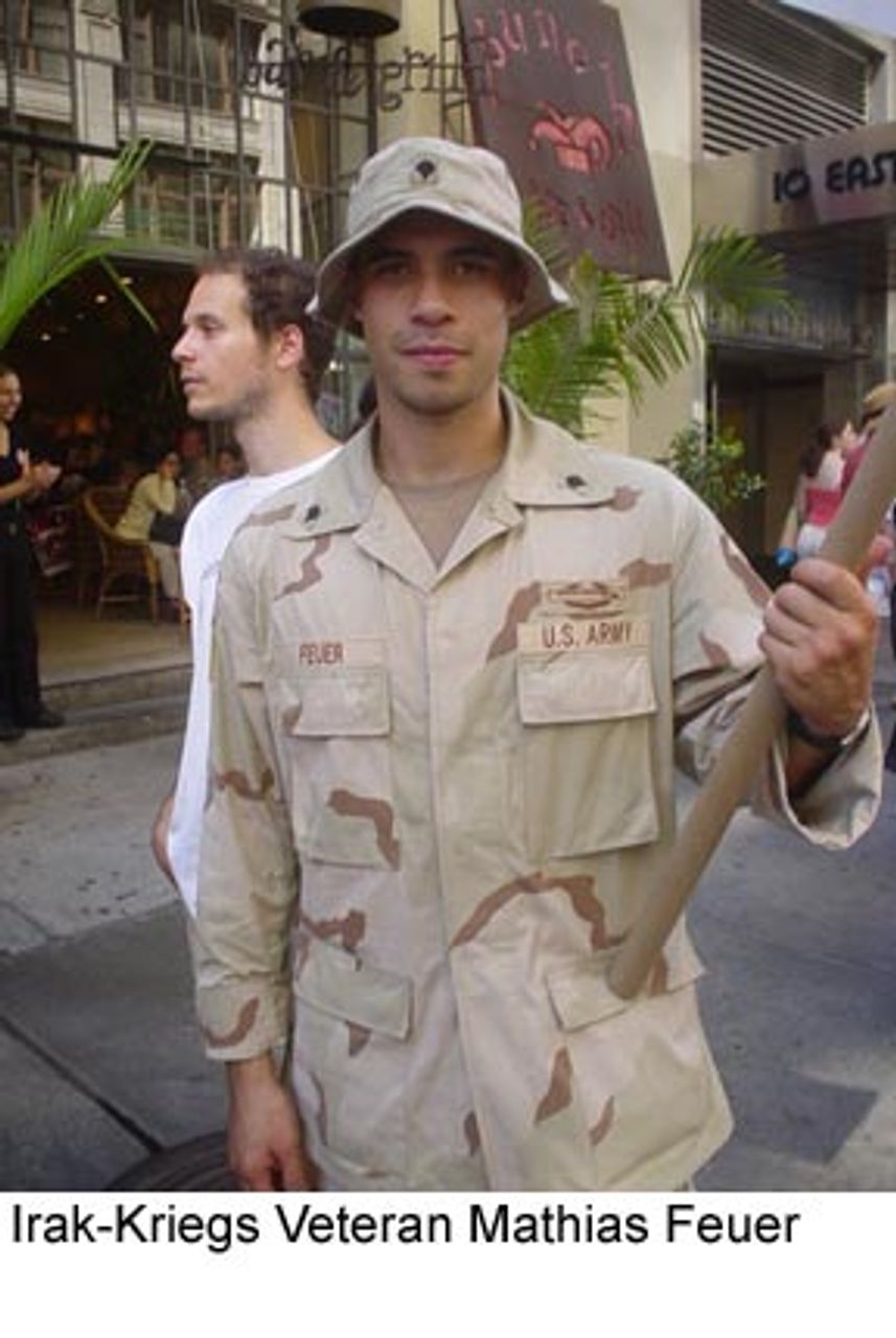 Einer von ihnen, Mathias Feurer, sagte, er beteilige sich mit der Forderung an der Demonstration, dass seine Kameraden umgehend aus dem Irak zurückgebracht werden. Als Mitglied der ersten Panzerdivision hatte er an der Invasion des Irak teilgenommen und dort vier Monate verbracht. Nachdem er seinen Militärdienst beendet hatte, versuchte er, die Armee zu verlassen. Sein Dienst wurde jedoch zwangsweise verlängert und er wurde in die USA zurückgeschickt, um dort bei der Nationalgarde zu dienen.