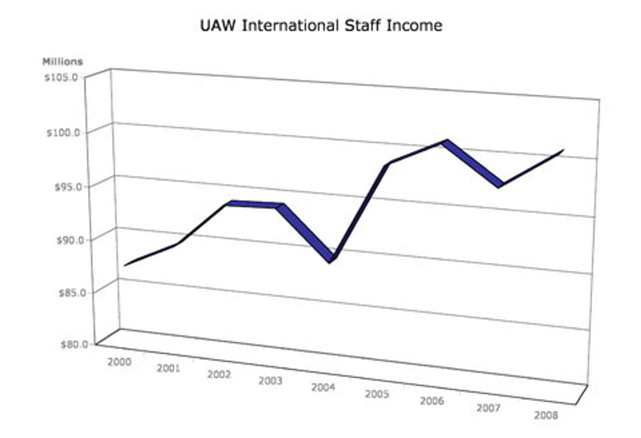 Der Vermögenszuwachs hat zu einer erheblichen Steigerung der Einkünfte des UAW-Verwaltungsapparates geführt. Im Jahr 2000 überwies die UAW International ihren Angestellten 89.6 Mio. Dollar an Gehältern. 2008 hatte sich dieser Betrag auf 100.9 Millionen erhöht. Aus anderer Perspektive heißt das, dass die Hauptverwaltung der UAW im Jahr 2000 pro Mitglied 133 Dollar Einkommen bezog. Nur acht Jahre später waren es 233 Dollar.