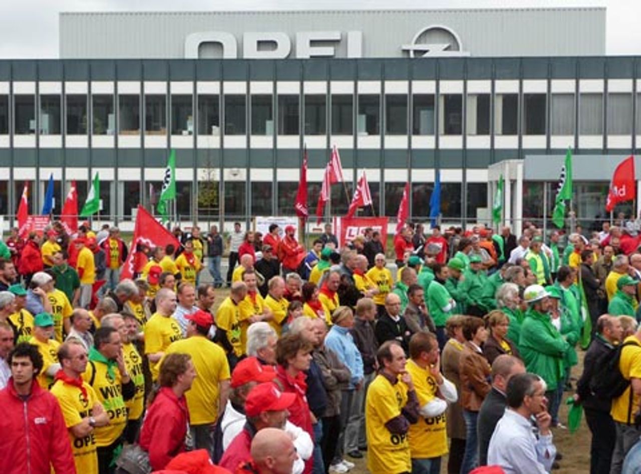Kundgebung vor dem WerkGegenwärtig arbeiten an den europäischen GM-Standorten ca. 54.000 Arbeiter. Das Magna-Konzept sieht den Abbau von 10.952 Arbeitsplätzen vor. Davon 4116 in Deutschland (Bochum 2191, Rüsselsheim 1427, Kaiserslautern 456, Eisenach 42); 2517 in Belgien, das bedeutet die Schließung des Werks in Antwerpen; 2090 in Spanien; 1373 in Großbritannien und 437 in Polen. (Quelle: Opel-Treuhandbeirat)