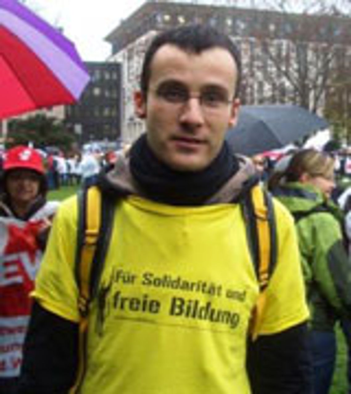 Er sehe einen Zusammenhang zu den aktuellen Kämpfen der Arbeiter gegen Entlassungen und Lohnsenkungen, fuhr er fort. "Die Bildung muss doch für alle da sein, egal woher ich komme, aus welcher sozialen Schicht. Es ist der Schlüssel zum späteren Erfolg. Für uns ist, denke ich, die Solidarität zwischen Schülern und Arbeitern wichtig."