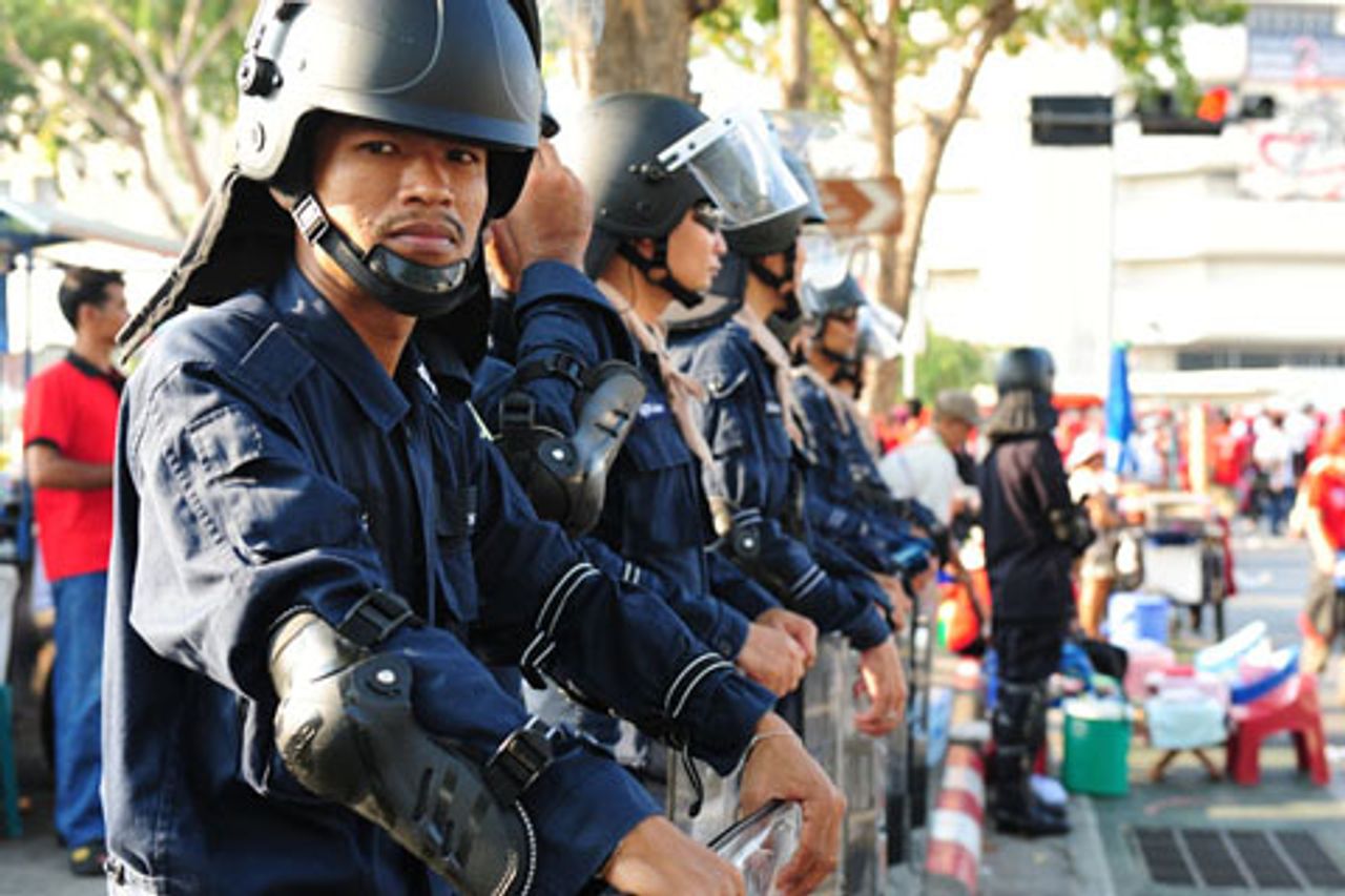 Massives PolizeiaufgebotDie Regierung hat in Bangkok eine riesige Truppe aus 50.000 Soldaten, Polizisten und Sicherheitspersonal mobilisiert. In seiner wöchentlichen Radioansprache am Sonntag hat Abhisit Gerüchte über einen Militärputsch dementiert und erklärt, er werde vorerst keinen nationalen Notstand ausrufen. Ein Notstand würde der Armee ausgedehnte Machtbefugnisse verleihen, um hart gegen die Proteste durchzugreifen. Im letzten April sind die Armee und Pro-Thaksin-Demonstranten in Bangkok heftig aneinander geraten, wobei zwei Personen getötet und mehr als 120 verletzt wurden.