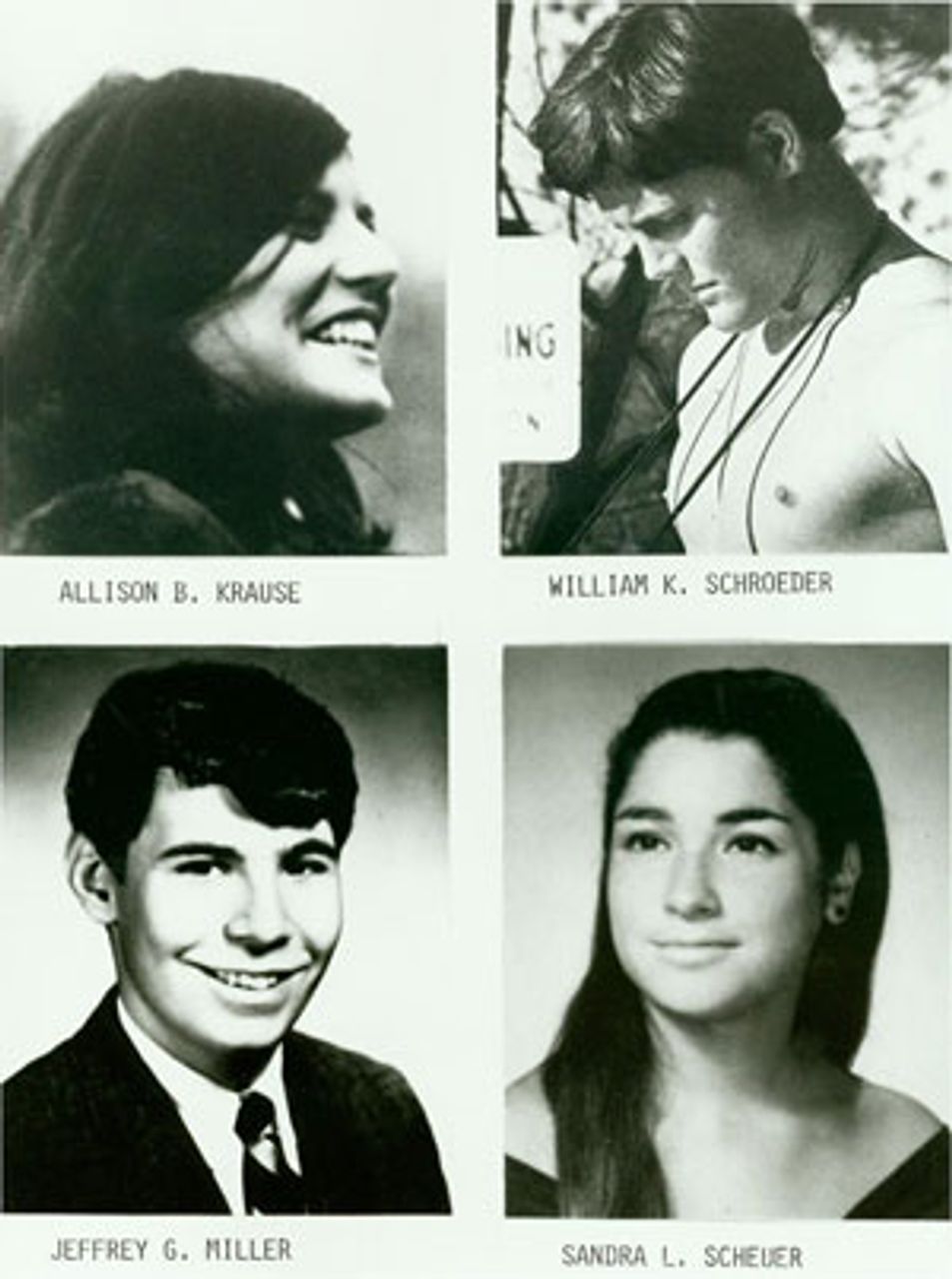 Die vier Studenten, die im Mai 1970 von der Nationalgardean der Kent State University getötet wurden. Weitere Bilder