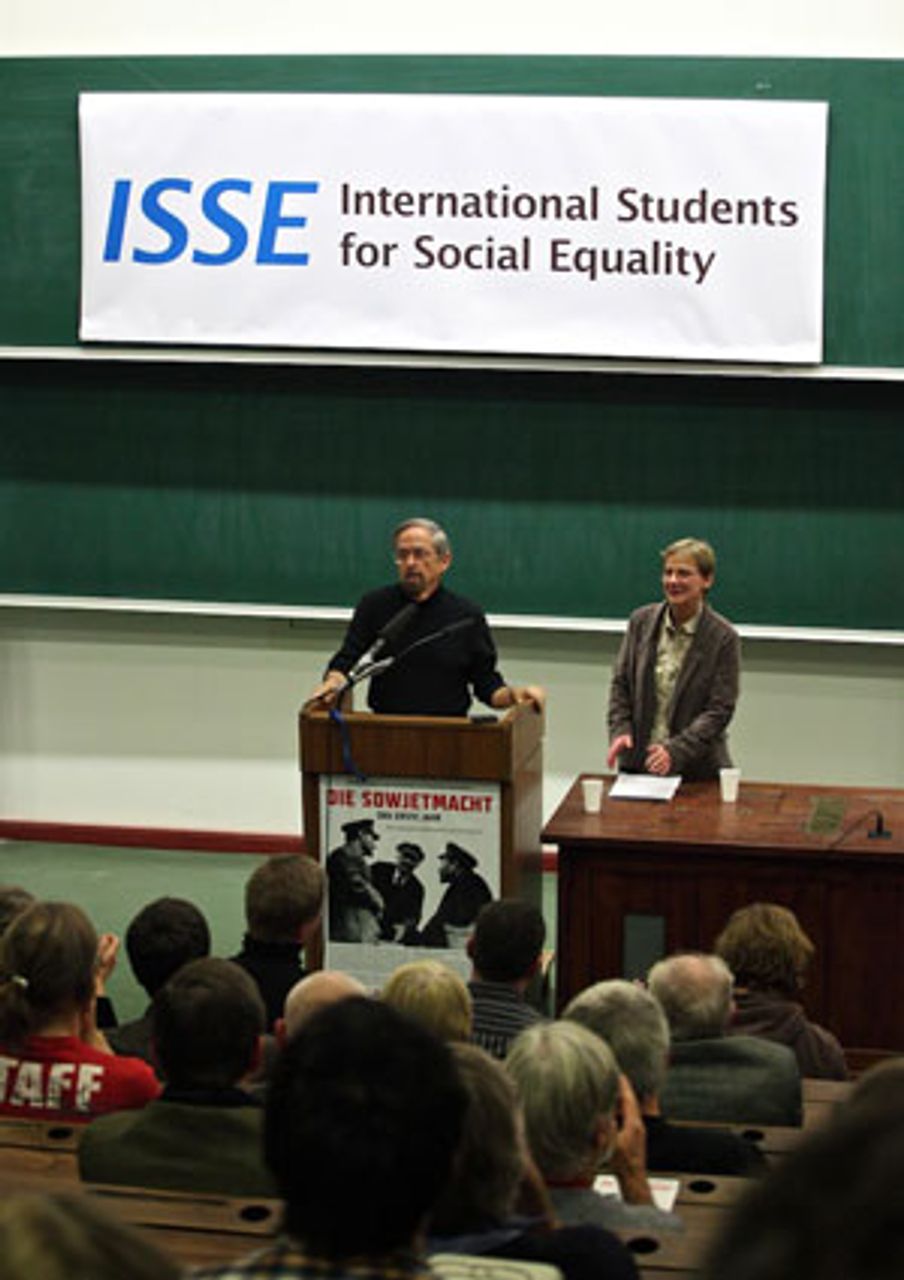 Ulrich Rippert, Vorsitzender der Partei für Soziale Gleichheit, begrüßte den führenden Experten der Geschichte der Russischen Revolution. Professor Rabinowitch sei ein unerschütterlicher Anhänger der dokumentengestützten Geschichtsschreibung. „Jedes Detail seiner Arbeit ist durch überprüfbare Dokumente belegt“, betonte er. Damit stehe die wissenschaftliche Arbeit Rabinowitchs im Gegensatz zur ideologiebelasteten Interpretation der russischen Revolution und der Sowjetunion, die auch heute weit verbreitet sei.