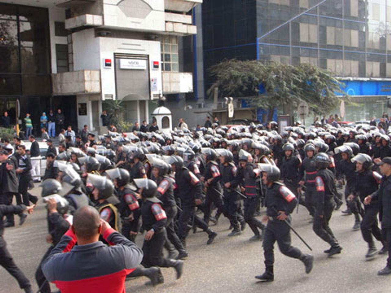 Demonstranten zogen vor der Parteizentrale der regierenden Nationaldemokratischen Partei in Kairo auf und riefen „Wir wollen eine freie Regierung" und „Nieder mit Mubarak". Später näherte sich die Menge dem Tahir Platz und versuchte das Parlamentsgebäude zu stürmen. Sie trafen auf große Einheiten von Polizei und Sicherheitskräften, die sie mit Wasserwerfern, Tränengas und Schlagstöcken zurückdrängten.