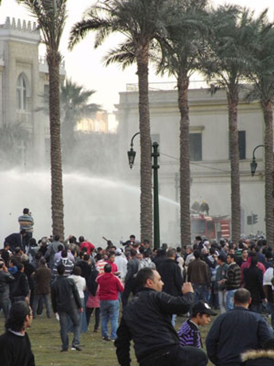 Einsatz von Wasserwerfern gegen Demonstranten im Zentrum von KairoAus Angst vor sozialen Unruhen vergleichbar mit Tunesien boykottierten Ägyptens führende Oppositionsparteien und –politiker die Demonstrationen und gaben Erklärungen ab, die ihre Anhänger davon abhalten sollten, sich daran zu beteiligen.