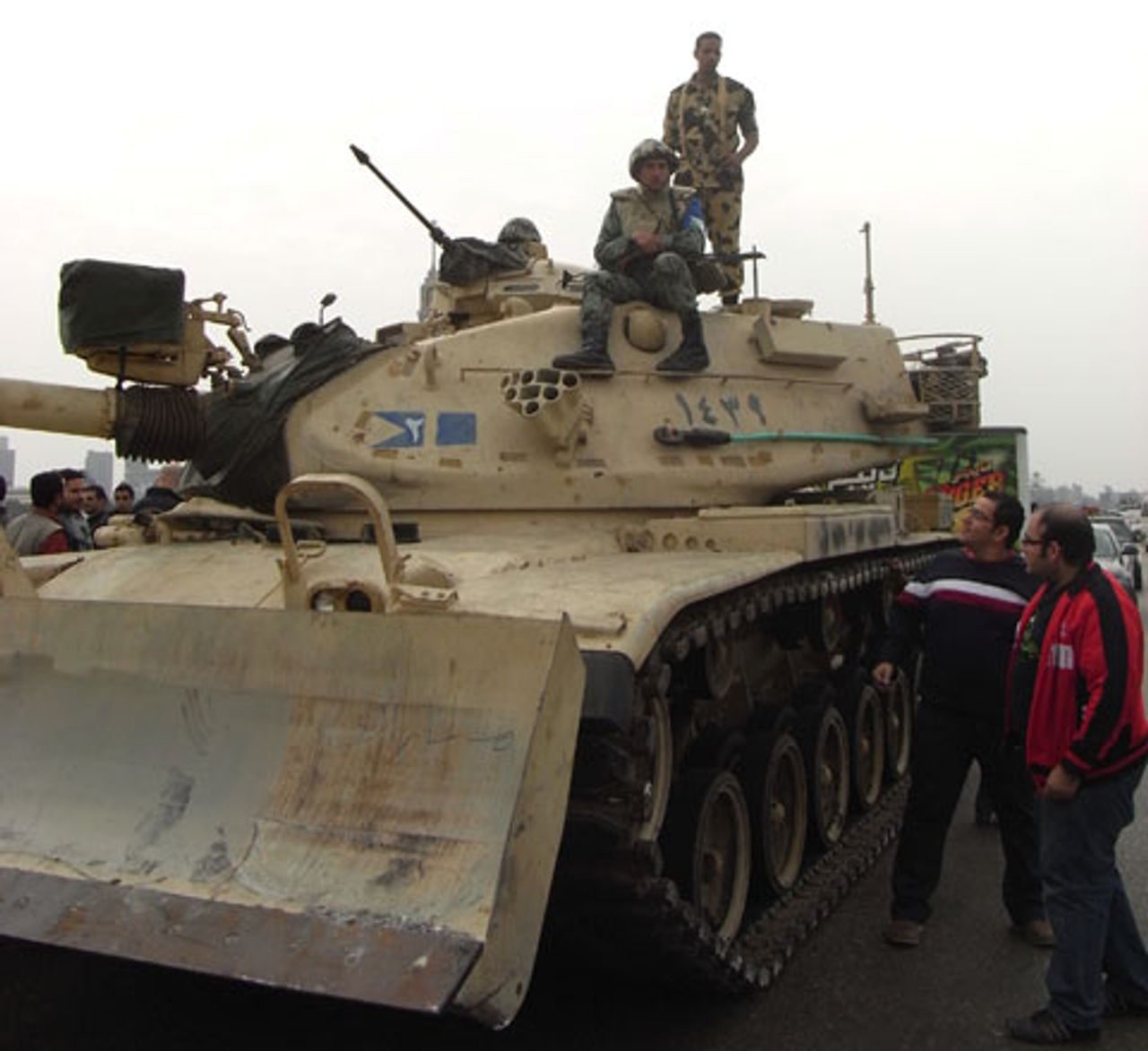 Mein Weg führt vorbei am ausgebrannten Hauptquartier der regierenden Nationaldemokratischen Partei (NDP). Das verkohlte Gemäuer sieht aus wie ein Denkmal der Wut und des Volkszorns gegen ein Regime, das seit Jahrzehnten die Interessen der Bevölkerung mit Füßen getreten hat. Ich laufe an Militärbaracken vorbei, deren Einheiten eigentlich die Ausgangssperre durchsetzten sollten, aber niemanden daran hindern, den Platz zu betreten.