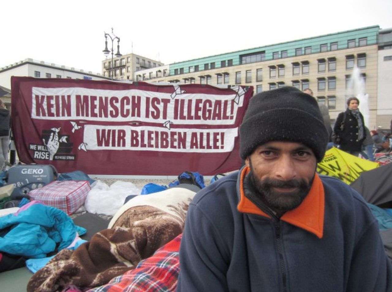 Während der Protest am Brandenburger Tor beendet ist, befinden sich nach wie vor dutzende Migranten in einem improvisierten Zeltlager auf dem Berliner Oranienplatz. Nachdem sie über ein Jahr in Zelten verbrachten, haben der Berliner Senat aus CDU und SPD sowie die Grüne Bezirksbürgermeisterin Monika Herrmann angekündigt, den Betroffenen eine Unterkunft bereitzustellen. Eine Immobilie sei aber noch nicht gefunden, heißt es.