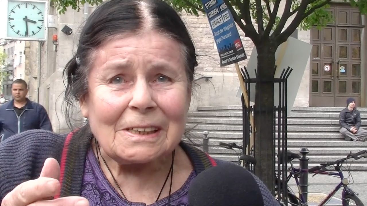 Eine Rentnerin sagte: „Ich wurde 1928 geboren und lebe im Altersheim. Wenn ich könnte, würde ich etwas tun. Ich habe viel gesehen. Das macht mich wahnsinnig: Diese Lügerei, diese Heuchelei.“ Auf die Frage, wie sie das Naziregime unter Hitler erlebt habe, sagte sie: „Meine Eltern haben viele jüdische Freunde gehabt, mein Vater hat immer gegen Krieg und Hitler geredet, ist fast erschossen worden und wurde um ein Haar gerettet. Von klein auf wurden wir von den Eltern aufgeklärt, wie schlimm Hitler ist.“ Dass dies alles wiederkomme, sei kaum zu glauben.