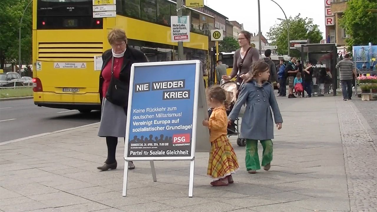 Am Dienstag organisierte die PSG eine Wahlkundgebung im Berliner Arbeiterstadtteil Wedding. Die Redner erläuterten die politische Verschwörung, die hinter der Kriegshetze in den Medien steht. Die dramatischen Ereignisse in Odessa haben viele Menschen schockiert und beherrschten die Diskussionen auf der Kundgebung. Ein Mob aus Fußballhooligans unter Führung des neonazistischen Rechten Sektors hatte am vergangenen Wochenende prorussische Demonstranten angegriffen. Als diese im Gewerkschaftshaus Zuflucht suchten, steckten die Faschisten das Gebäude in Brand.