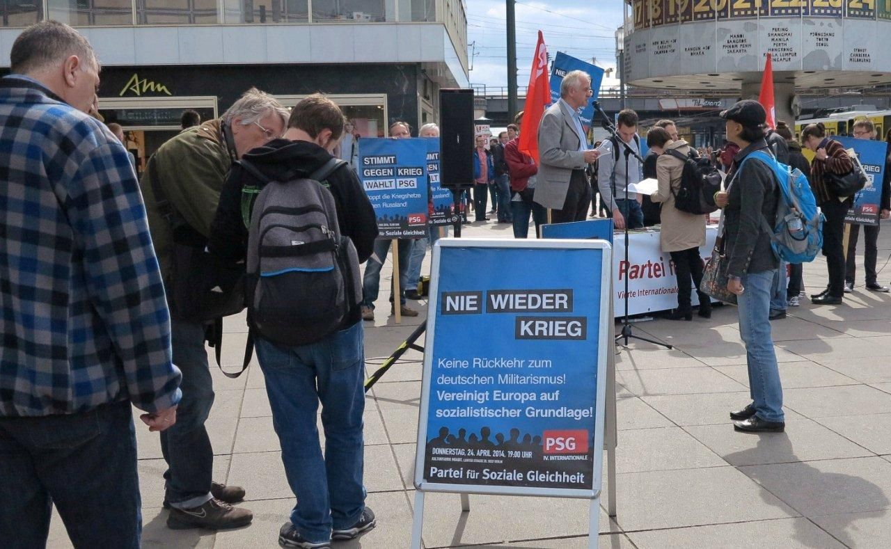Am vergangenen Samstag gipfelte die Europawahl-Kampagne der Partei für Soziale Gleichheit in einer Kundgebung am Berliner Alexanderplatz, die zahlreiche Berliner Passanten und Touristen anzog. Wie in den Tagen zuvor bei kleineren Kundgebungen in den Berliner Arbeiterbezirken Wedding und Neukölln hörten zahlreiche Menschen den Reden der Kandidaten aufmerksam zu und lasen den PSG-Aufruf "Kämpft gegen Krieg - wählt PSG!"