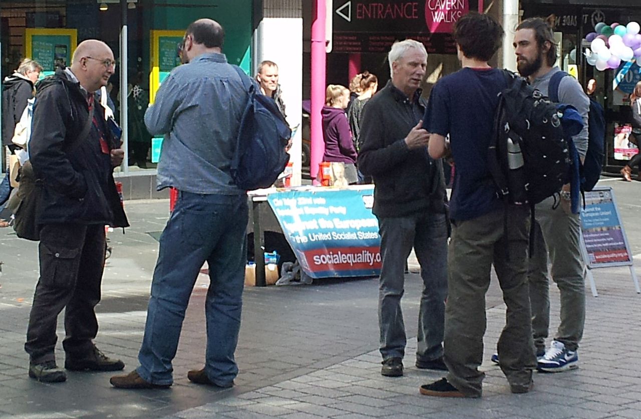 Wir kämpfen dafür, dass die Arbeiterklasse die Macht in die eigenen Hände nehmen und eine Arbeiterregierung schaffen kann, die einem sozialistischen Programm verpflichtet ist. Wir sind überhaupt nicht für die Europäische Union. […] Wir sind auch nicht einfach für einen britischen Austritt. Wir sind für die Vereinigten Sozialistischen Staaten von Europa.“