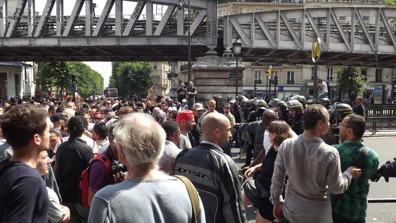 Der Marsch in Paris startete friedlich vom Immigrantenviertel Barbès aus zur Opéra Garnier. Bevor er begann, war bereits die Aufstands-Polizei mobilisiert worden, um zu versuchen, den Protestzug aufzuhalten. Im Viertel Barbès kam es zu den schlimmsten Zusammenstößen, als die Polizei einige Demonstranten beschuldigte, Steine und andere Objekte auf die Polizei geworfen und Autos angezündet zu haben. 38 Demonstranten wurden festgenommen, weil sie angeblich gewaltätig gegen die Polizisten geworden seien und „Wurfgeschosse“ wie z. B. Steine auf die geschleudert hätten.