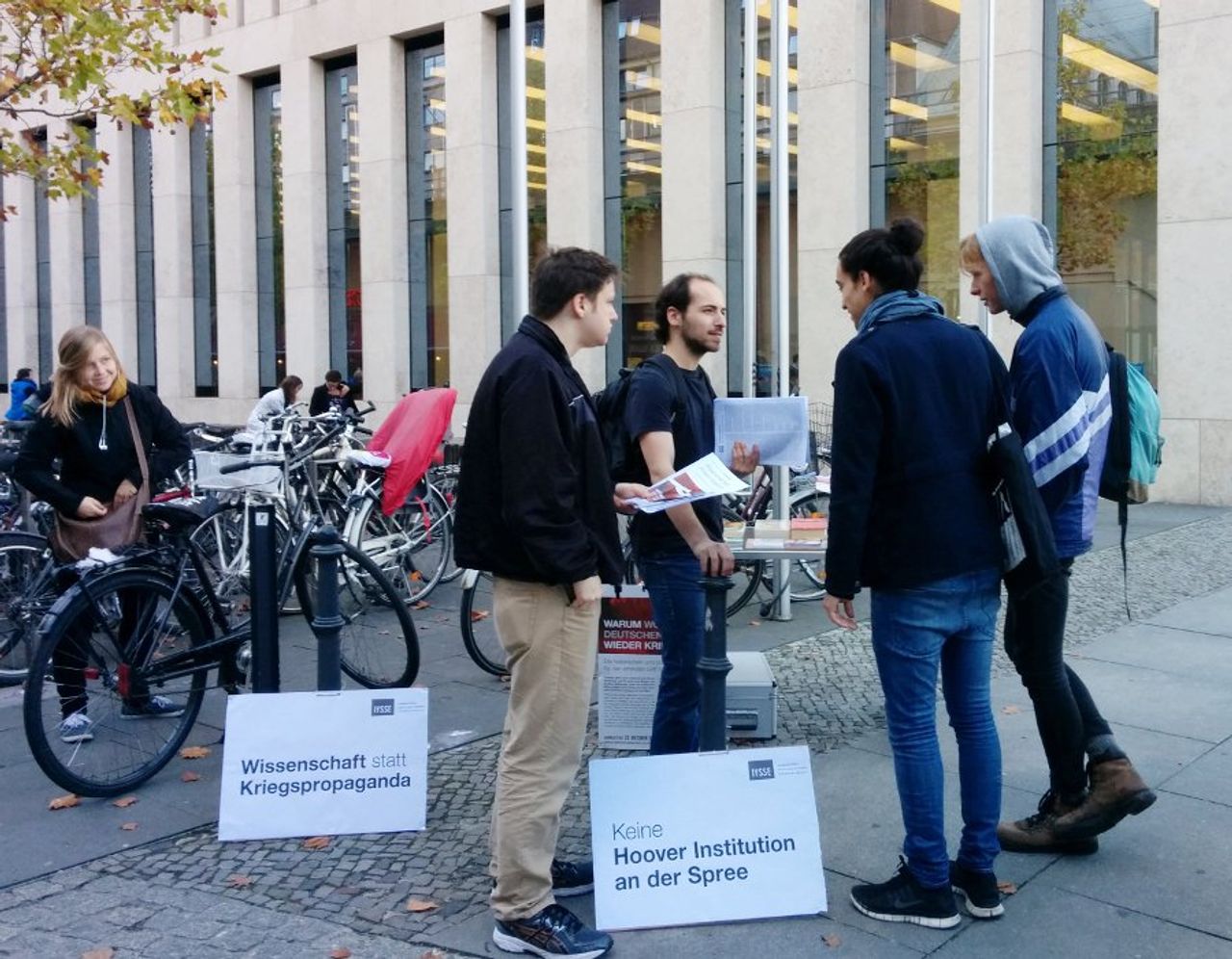 Mitglieder der IYSSE verteilten eine Erklärung, die unter dem Titel „Wissenschaft statt Kriegspropaganda“ gegen die Zensur protestiert und aufzeigt, wie die Humboldt-Universität an der ideologischen Kriegsvorbereitung beteiligt ist.