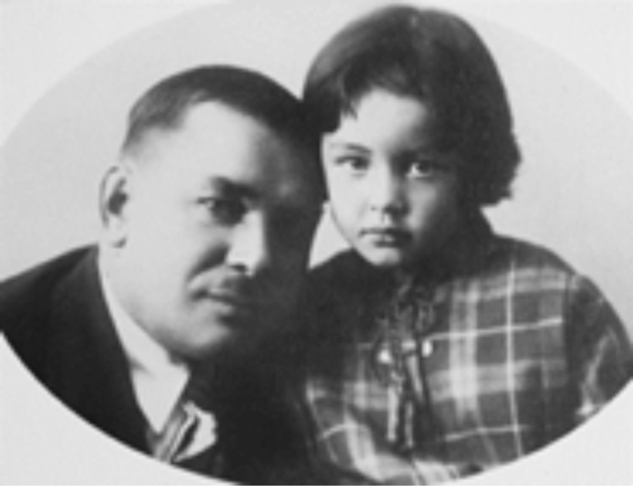 Als meine Mutter meinen Vater 1924 für Sokolnikow[7] verließ, bin ich bei meinem Vater geblieben. Sie hatte zu ihm gesagt: „Ich lasse sie bei Dir, damit es nicht so schwer für Dich wird“. Ich liebe dieses Foto sehr, weil es zeigt, wie nahe wir uns waren.