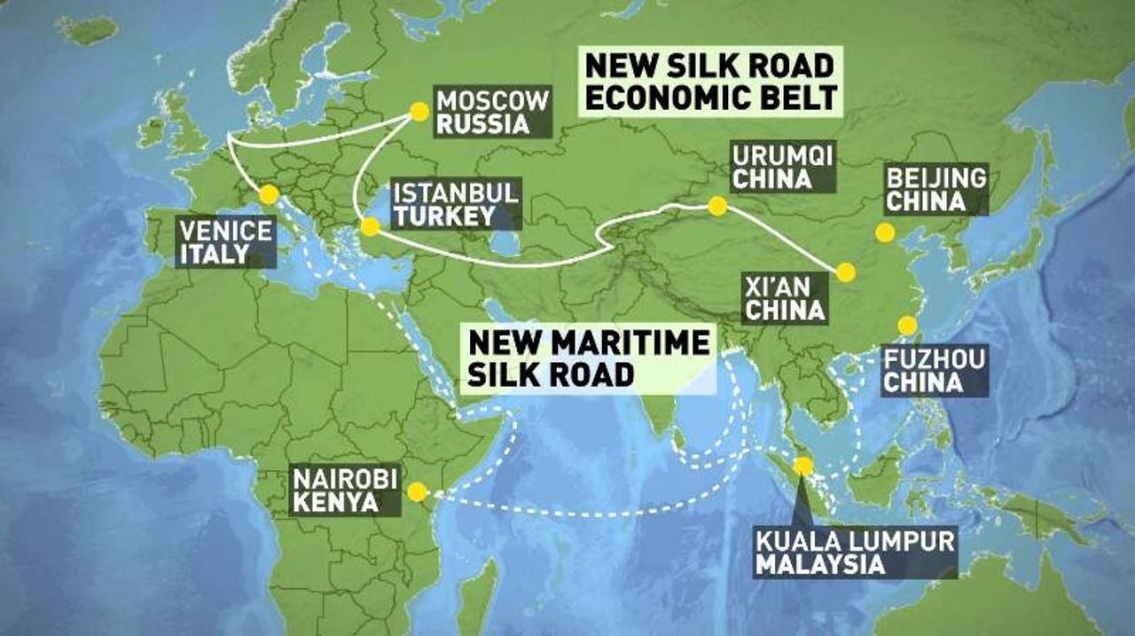 Im Jahr 2013 arbeitete die neue Führung von Präsident Xi Jinping und Premier Li Keqiang eine umfassende geopolitische Strategie aus bestehenden außenpolitischen Elementen mit dem Ziel aus, China aus seiner strategischen Einkreisung durch die USA und ihre Verbündeten zu befreien und weitere Handels- und Investitionsmöglichkeiten für den chinesischen Kapitalismus zu erschließen. Das Projekt, das unter den Namen Neue Seidenstraße, Seidenstraße des 21. Jahrhunderts oder „One Belt, One Road“ (OBOR) bekannt ist, sieht einen massiven Ausbau der Infrastruktur vor, der die eurasische Landmasse und Afrika über Land und See verbinden soll.