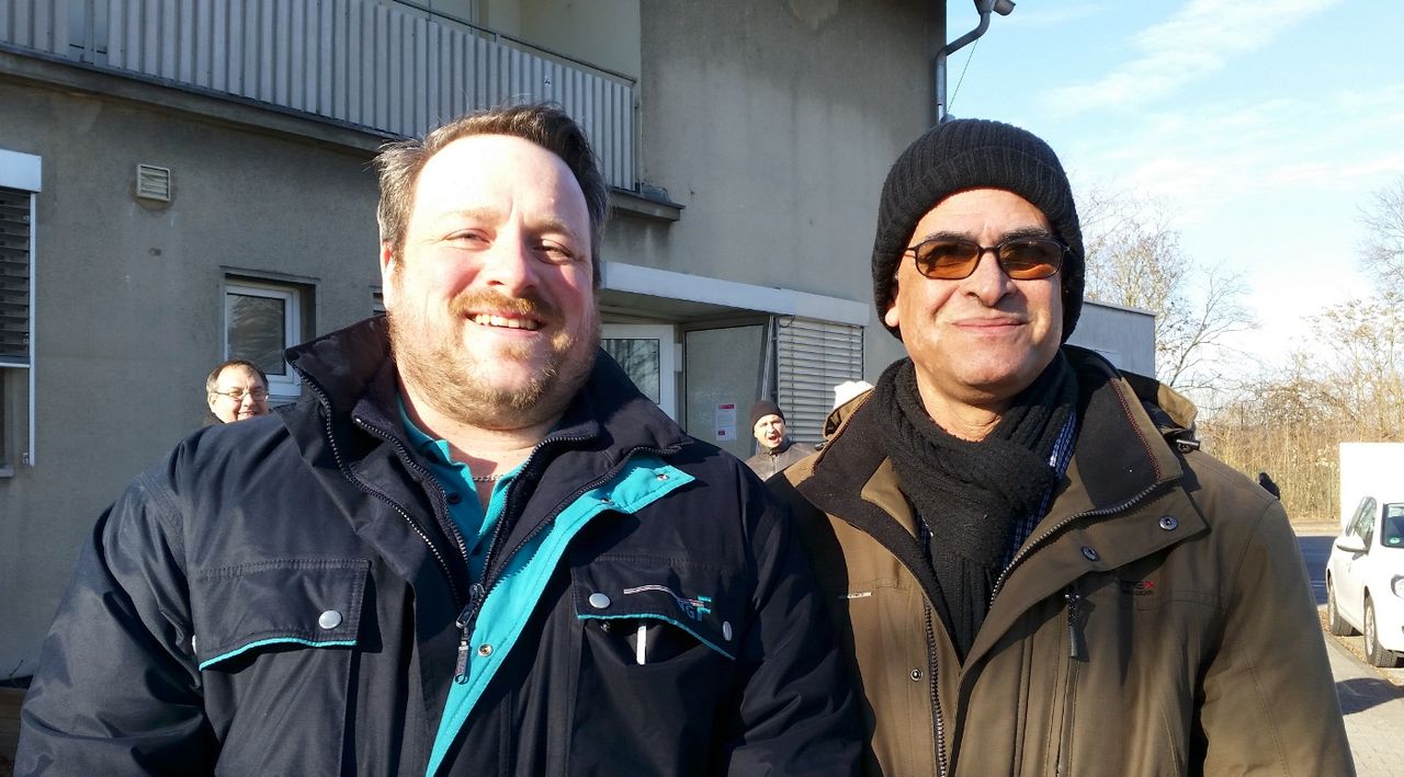 Erstens die Unterstützung, die die Streikenden von andern Arbeitern erfahren. Immer wieder kommen Besucher vorbei, die Kuchen oder irgendetwas Anderes vorbeibringen und sagen, dass sie die Busfahrer unterstützen. Ein Fahrzeug der städtischen Nahverkehrsgesellschaft VGF hält am Tor an, der Fahrer kurbelt die Scheibe runter und ruft: „Wann dürfen wir endlich mitstreiken?“ In einem kurzen Gespräch sagen er und zwei Kollegen: „Schon aus Solidarität sollten wir doch längst mit draußen sein.“