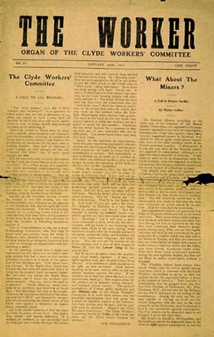 Die Aktionen der Bergarbeiter bringen die wachsende Politisierung der Arbeiterkämpfe in Glasgow und umliegenden Industriegebieten zum Ausdruck. Hier führt das Clyde Workers Committee (CWC), das die Bergarbeiter im Februar 1915 gegründet haben, die Kämpfe an. Im Mai 1915 haben tausende Arbeiter unter sozialistischer Führung einen Mietstreik gegen Mietwucher durchgeführt. Die Bewegung hat sich über die ganze Stadt ausgebreitet und zu Massendemonstrationen geführt, und 20.000 Arbeiter haben sich bis November 1915 geweigert, die Mieterhöhungen zu bezahlen. Weil sich die Bewegung immer weiter ausdehnte und auch in den Armenvierteln Unterstützung gewann, hat sich die Regierung gezwungen gesehen, die Mieten auf Vorkriegsniveau einzufrieren, um eine weitere Ausweitung der Proteste zu verhindern.