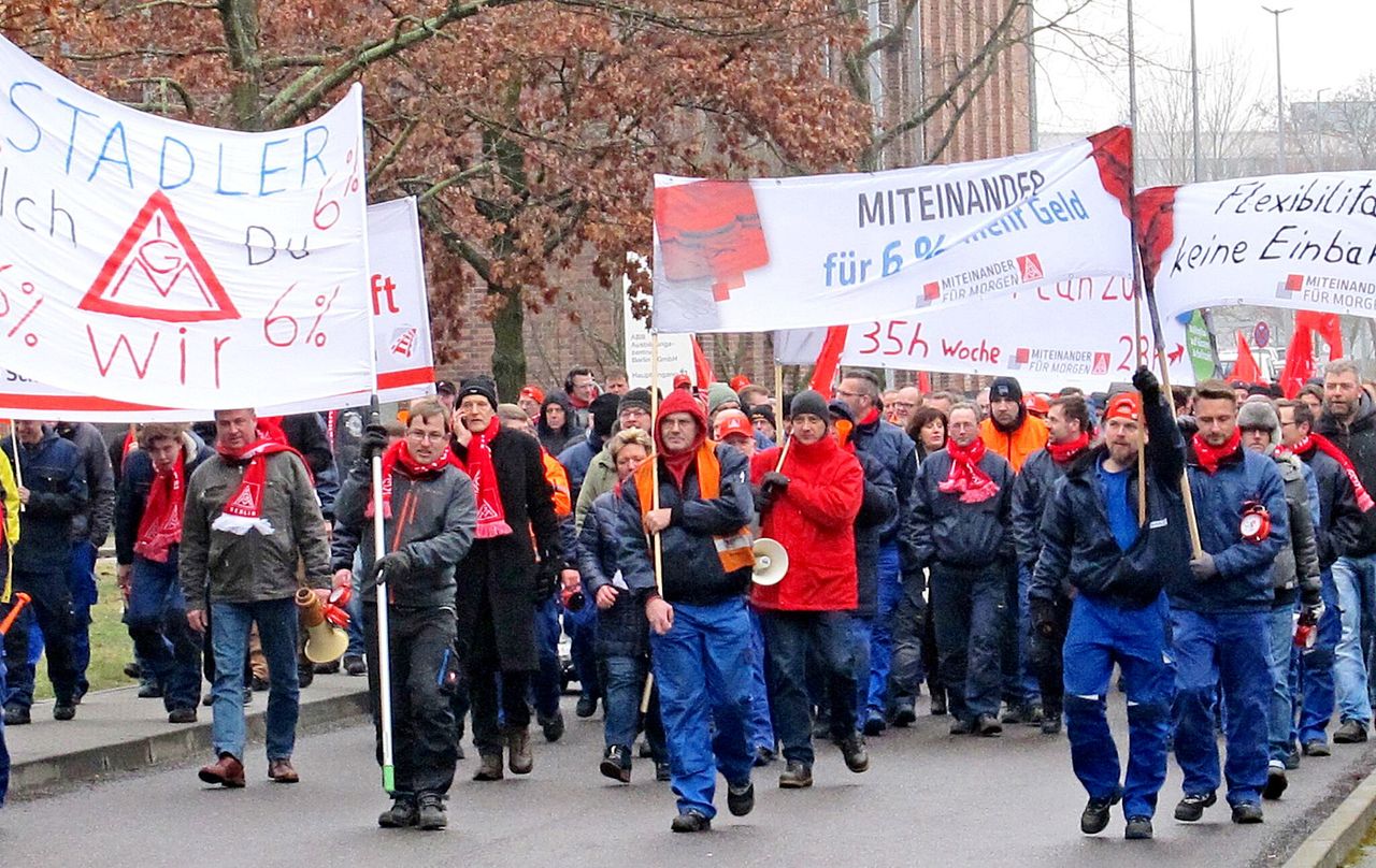 Am Donnerstag und Freitag wurden die Warnstreiks in der Metall- und Elektroindustrie erneut ausgeweitet. Seit Wochenbeginn beteiligten sich über 340.000 Beschäftigte an befristeten Streikaktionen, Protestkundgebungen und Demonstrationen.