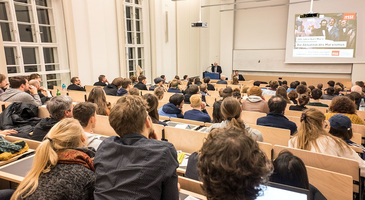 Am Montag kamen etwa 150 Studierende zur Wahlabschlussveranstaltung der IYSSE an der Humboldt-Universität Berlin. Unter dem Titel „200 Jahre Karl Marx – Die Aktualität des Marxismus“ diskutierten sie mehrere Stunden über soziale Ungleichheit, Militarismus und die revolutionären Perspektiven der Vierten Internationale.