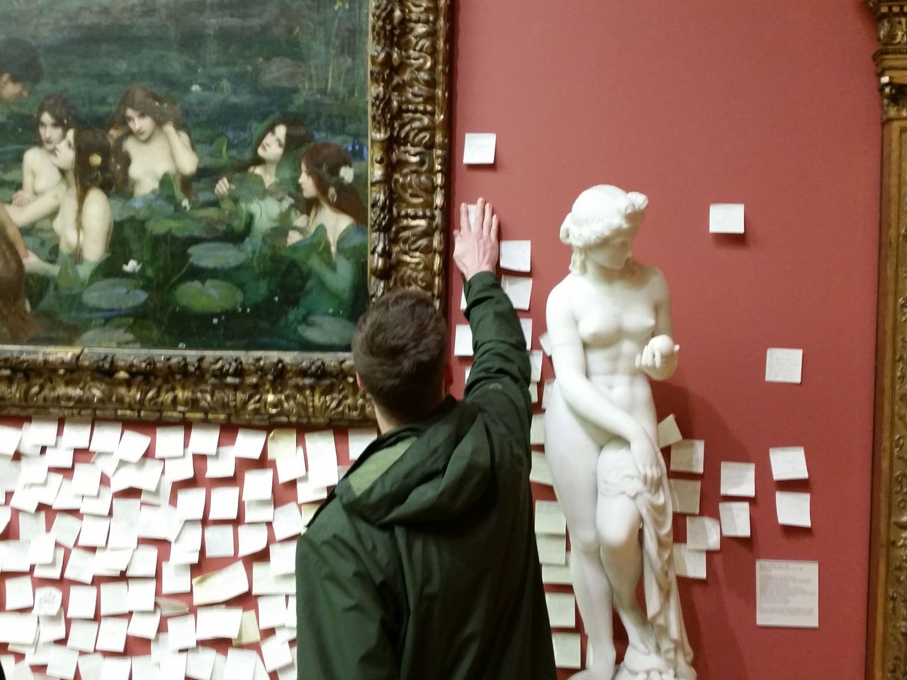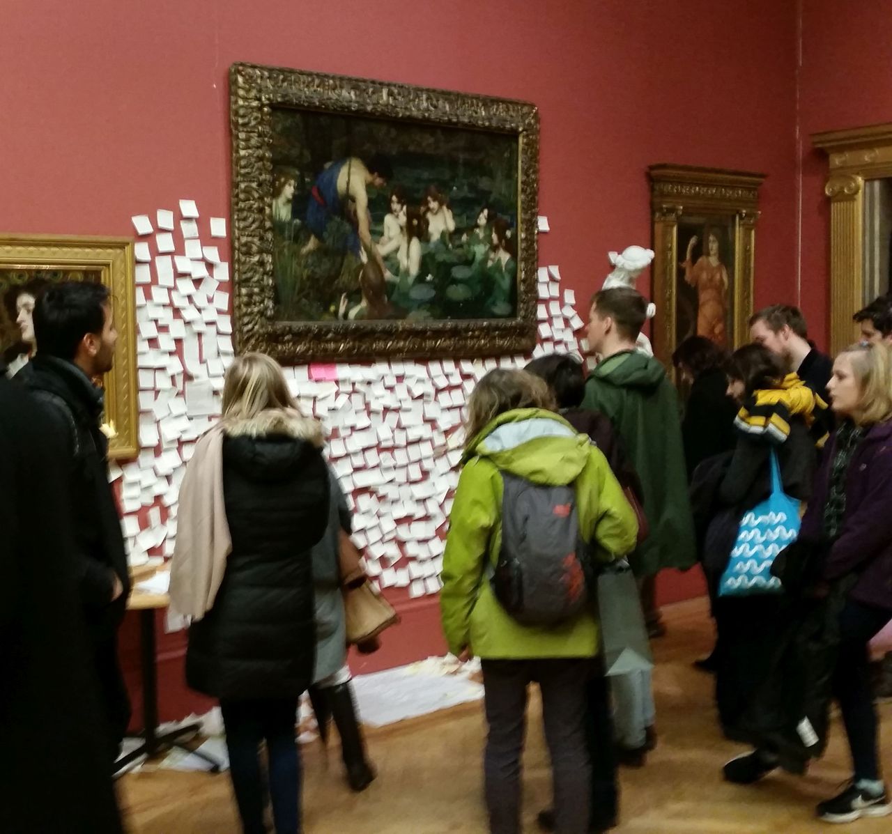 Auf vielen der Post-it-Notizen wurde die Aktion der Galerie verurteilt. Der generelle Tenor kann an solchen Kommentaren abgelesen werden wie „Hände weg von unserem Gemälde“, „Das ist Zensur“, „Nein zur Zensur – was ist Kunst ohne Freiheit?“, „Zensur ist die scharfe Kante der Keule der Diktatur“, „1984“, „Froh, das schöne Gemälde wieder hängen zu sehen – war etwas besorgt, dass evtl. Bücher als Nächstes dran sind“, „Feministinnen im Wahnrausch – ich schäme mich Feministin zu sein“ und „Die Galerie gehört dem Volk, nicht den Direktoren“. Am folgenden Wochenende, mehr als eine Woche, nachdem das Gemälde wieder angebracht worden war; umhängten Galeriebesucher es immer noch mit Post-it-Notizen.