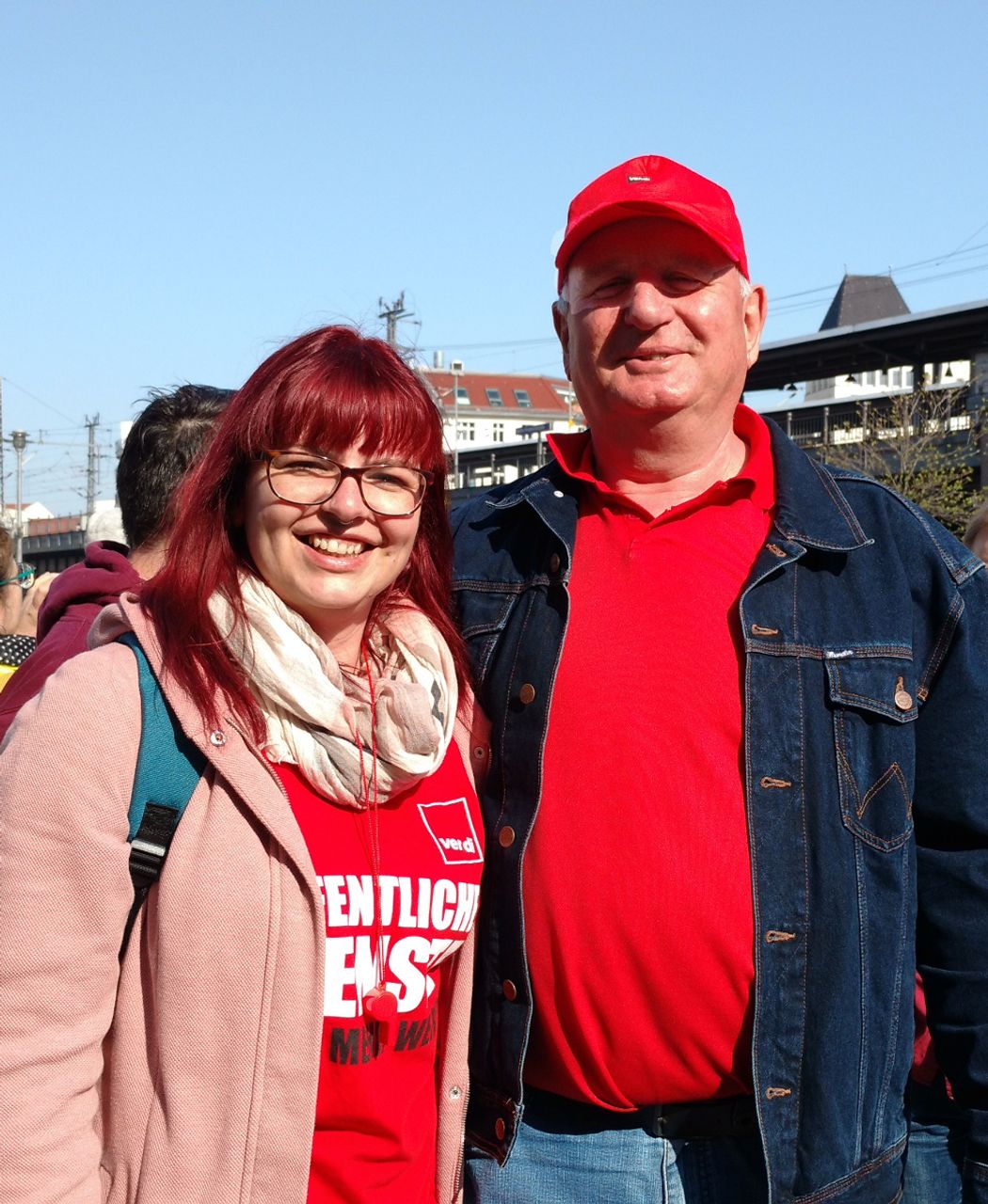 Ihr Kollege Frank ist 61 und bald in Teilzeit. Sollte seine Stelle neu besetzt werden, würde eine neue Kraft mindestens zwei Gehaltsklassen unter ihm eingruppiert, also etwa 500 Euro weniger im Monat erhalten. Gleichzeitig habe der Stress enorm zugenommen: „Heute machen drei Leute, was früher fünf gemacht haben.“ Man sei nur noch damit beschäftigt, Entschuldigungsbriefe zu schreiben, und stehe unter einem ständigem Druck, so Frank. Besonders wichtig ist ihm, dass die unteren Gehaltsgruppen deutlich mehr bekommen. Deshalb halten sie die geforderte Mindesterhöhung um 200 Euro für besonders wichtig.