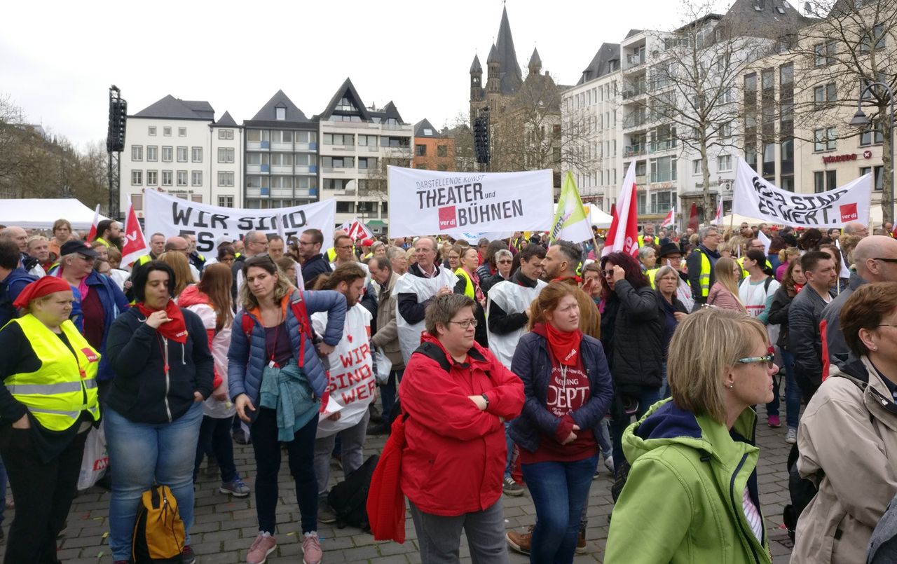 Am Dienstag weiteten die Dienstleistungsgewerkschaft Verdi und andere Gewerkschaften die Warnstreiks im öffentlichen Dienst aus. In Berlin, Brandenburg, Baden-Württemberg, Bayern, Hessen, Nordrhein-Westfalen, Niedersachsen und Bremen befanden sich laut Gewerkschaftsangaben 60.000 Arbeiter im Streik. Viele tausend beteiligten sich an den Demonstrationen und Kundgebungen.