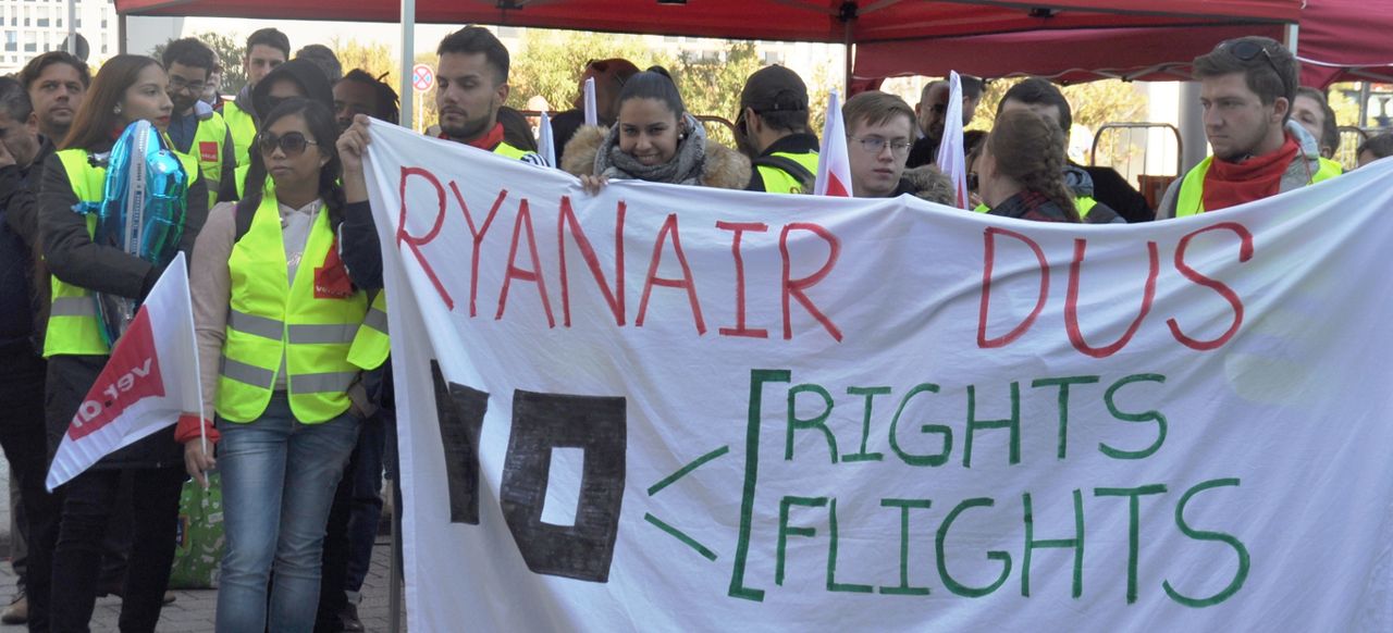 An dem bisher größten Streik gegen die Billiglohnpolitik von Ryanair beteiligten sich am gestrigen Freitag gleichzeitig Kabinenpersonal und Piloten aus sechs europäischen Ländern: In Belgien, Italien, den Niederlanden, Portugal, Spanien und Deutschland ruhte 24 Stunden lang die Arbeit.