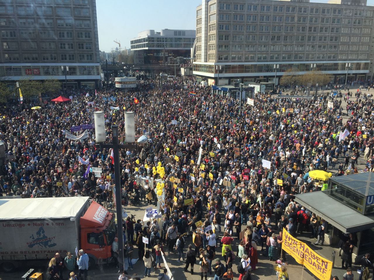In Berlin startete die Demonstration am Alexanderplatz, dem Sitz der Berliner Landesbank. Von dort zog der kilometerlange Demonstrationszug über die Karl-Marx-Allee durch Friedrichshain und Kreuzberg – zwei Viertel, die extrem von Gentrifizierung und explodierenden Mieten betroffen sind – zum Arena-Gelände. Dort fand zur gleichen Zeit die Berliner Immobilienmesse statt.