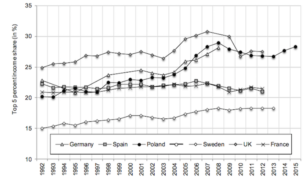 Laut einer Studie von 2017 fand der größte Anstieg der Einkommenskonzentration an der Spitze während der Periode des Wirtschaftswachstums von 2004 bis 2008 statt, nachdem Polen unter der EU-freundlichen Bürgerplattform (PO) der EU beigetreten war. Fünf Prozent der Einkommensbezieher erhielten dabei die Hälfte aller Einkommenszuwächse, die andere Hälfte ging an die unteren 95 Prozent.