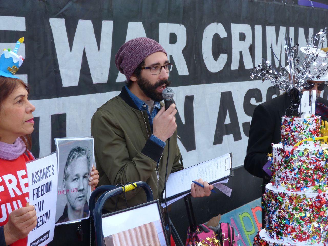 Der Organisator der Kundgebung, Patrick Bradatsch hatte außerdem die Bundestagsabgeordnete der Linkspartei, Sevim Dağdelen, sowie Jacop Appelbaum, den langjährigen Gefährten von Assange und Edward Snowden, eingeladen, der seit langem seine erste öffentliche Rede hielt. Ferner sprach mit Casey Soares ein Mitglied der International Youth and Students for Social Equality (IYSSE).