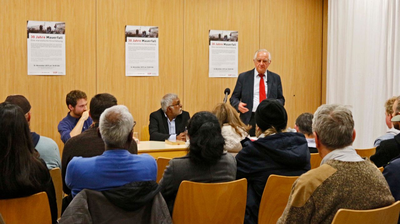 Wie Rippert ausführte, stoßen diese Zustände jedoch auf den entschiedenen und ständig wachsenden Widerstand der Bevölkerung. Dies sei nicht nur in Deutschland der Fall, sondern überall auf der Welt lebe der Klassenkampf wieder auf. Die wichtigste Lehre aus den Ereignissen vor 30 Jahren sei die Notwendigkeit einer marxistischen Partei. 1989 habe der Bund Sozialistischer Arbeiter, Vorläufer der SGP, zwar massiv in den Demonstrationen eingegriffen, doch er habe das Fehlen einer revolutionären Führung nicht spontan ausgleichen können. „In der heutigen Situation, in der die Anziehungskraft des Sozialismus praktisch täglich zunimmt, ist die alles entscheidende Frage der Aufbau der Vierten Internationale.“