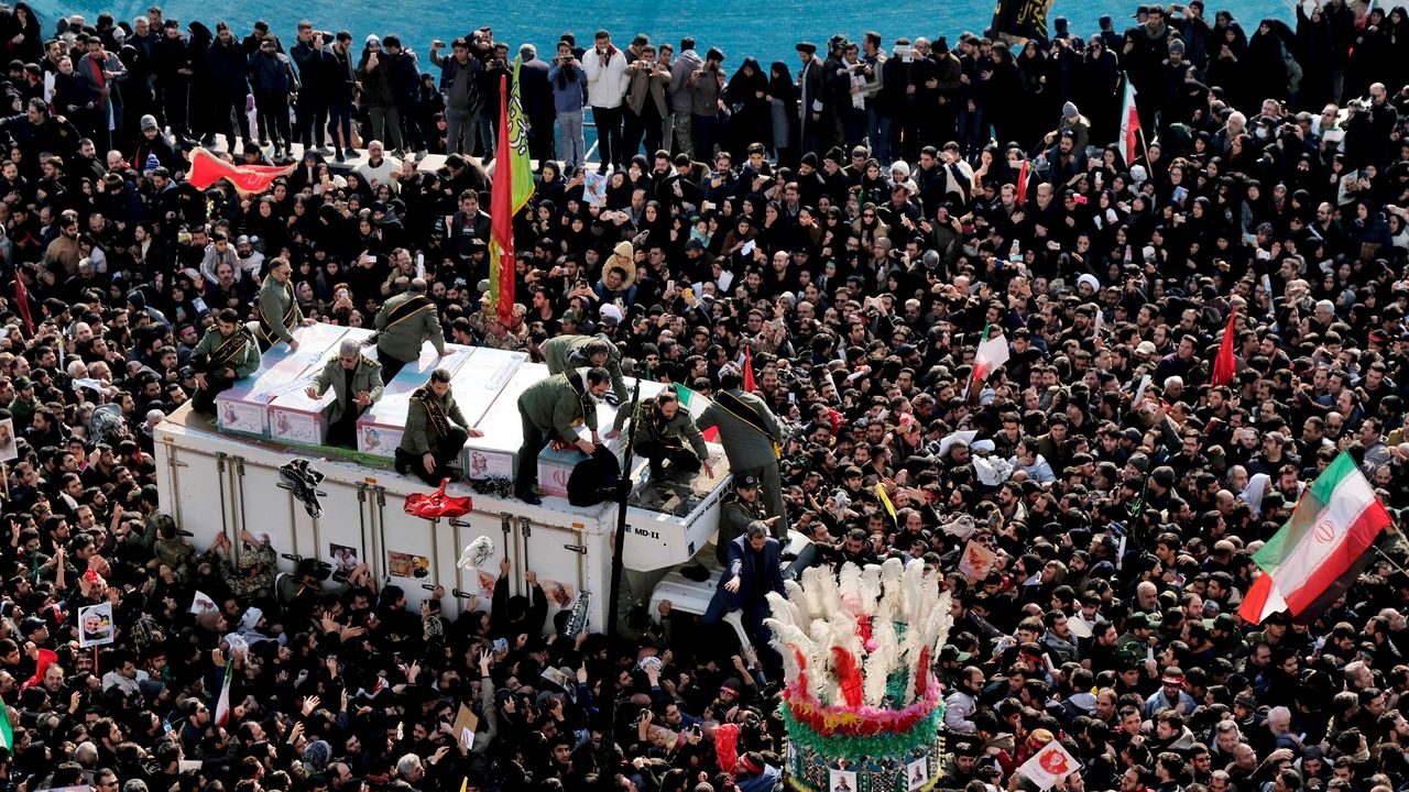 Soleimanis Trauerzug ging von Bagdad durch den Südirak, wo er in Nadschaf und Karbala Halt machte, zwei heilige Städte der Schiiten. Danach fuhr er nach Osten zur iranischen Provinz Chusestan und schließlich nach Teheran im Norden. Hier wurden die Särge von Soleimani und dem irakischen Milizenführer Abu Mahdi al-Muhandis, der am 3. Januar ebenfalls durch den Drohnenangriff getötet wurde, über die Köpfe einer riesigen Menge von Trauernden hinweg bewegt.