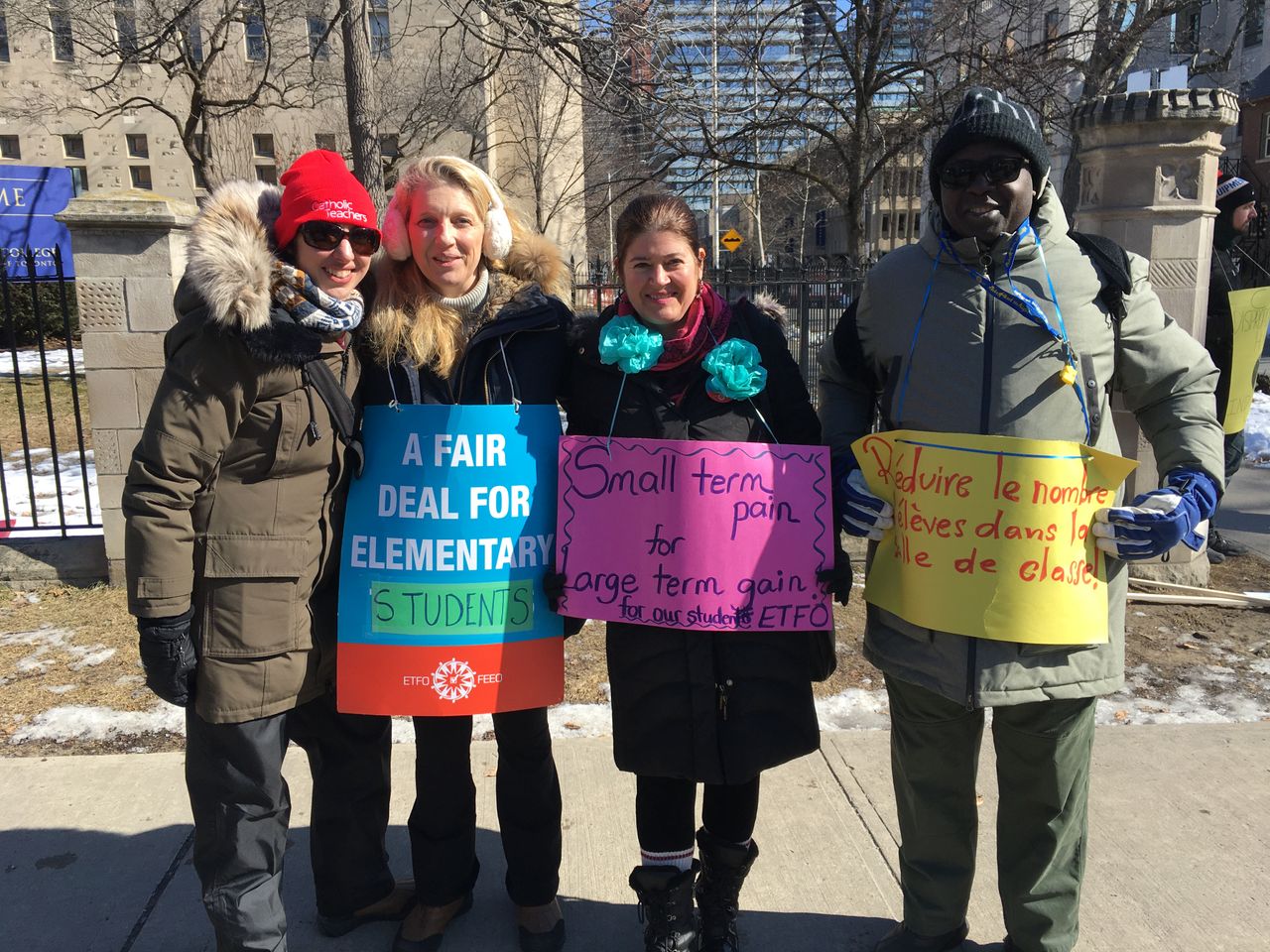 Am Freitag demonstrierten mehr als 30.000 Lehrer vor dem Queens Park in der Innenstadt von Toronto, wo sich das Provinzparlament befindet. Etwa 20.000 weitere Lehrkräfte bildeten einen kilometerlangen Massenstreikposten entlang der Autobahn, die sich in Torontos Vororte von Peel County erstrecken. Weitere 10.000 nahmen an einer Veranstaltung in Kitchener-Waterloo teil, ein regionales Zentrum im Südwesten von Ontario.