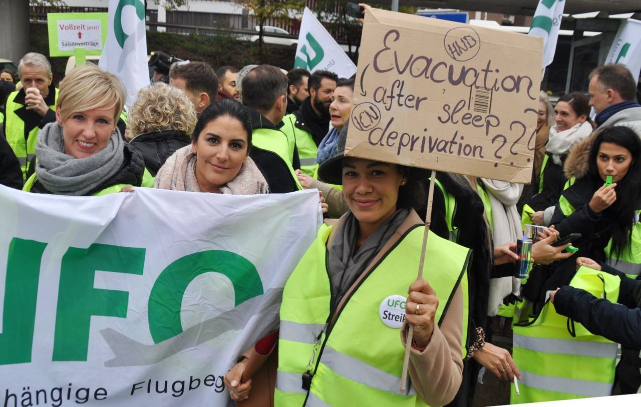 So hat die Unabhängige Flugbegleiter Organisation (Ufo) im Frühjahr des letzten Jahres gemeinsam mit der Dienstleistungsgewerkschaft Verdi für die Eurowings-Beschäftigten in Deutschland Tarifverträge abgeschlossen, nach denen Schichten möglich sind, die bis zu 14 Stunden dauern dürfen. Bis zu fünf Mal pro Monat dürfen Dienstpläne geändert werden. Bei Krankheit haben die Beschäftigten Lohn- und Gehaltsverluste, da österreichisches Tarifrecht zur Anwendung kommt.