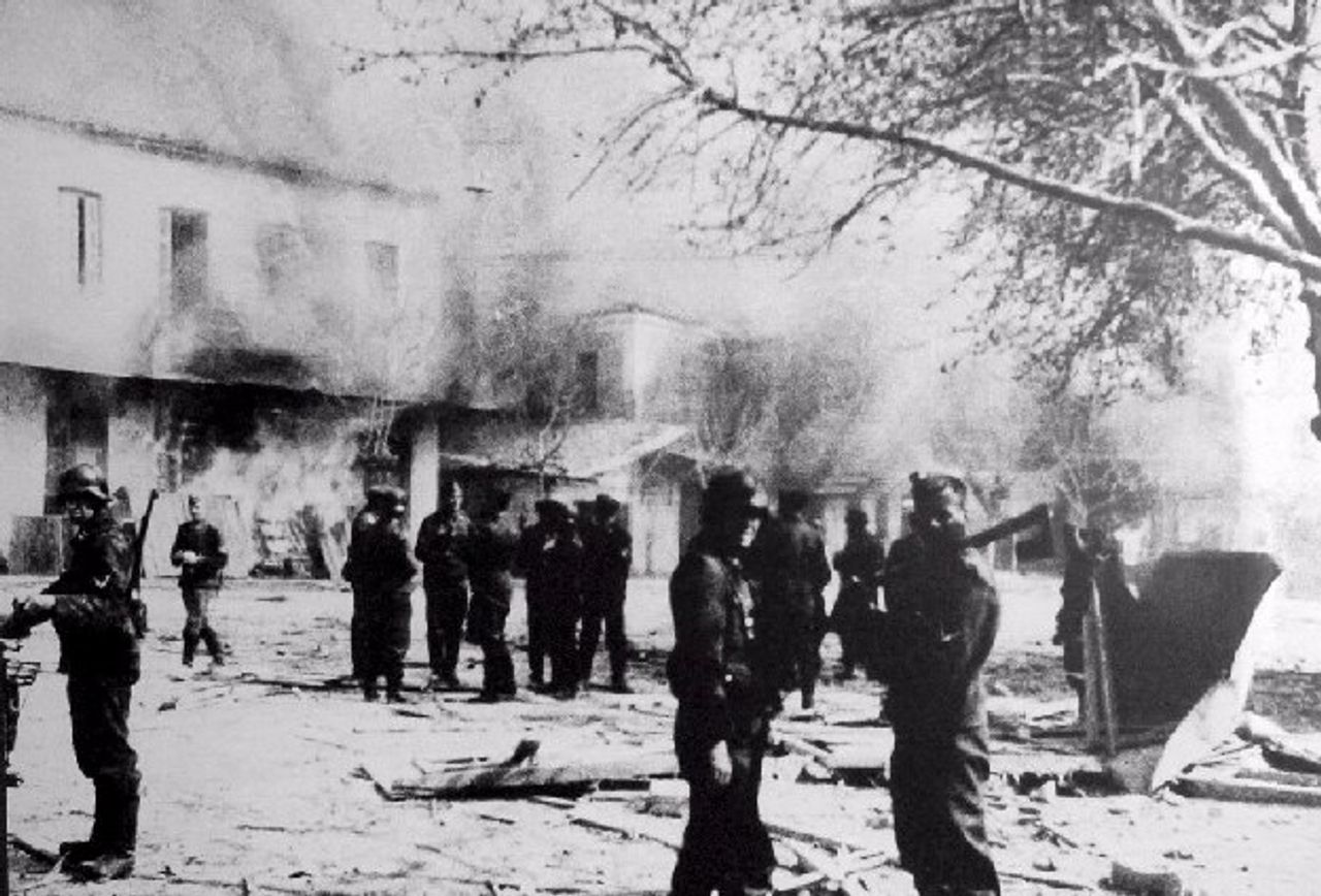 Beim Vorrücken auf die Stadt Kalavryta zerstörte die 117. Jägerdivision über fünfzig Dörfer, erschoss den Großteil der Bewohner und konfiszierte riesige Viehbestände. Nach der Ankunft in Kalavryta sperrten die Eindringlinge alle Frauen und Kinder unter 14 Jahren ins Schulgebäude, das sie anzündeten, während knapp 700 Männer auf einem nahegelegen Hügel erschossen wurden. Anschließend legten sie Feuer in der Ortschaft und im historischen Kloster bei Kalavryta. (13. Dezember 1943)