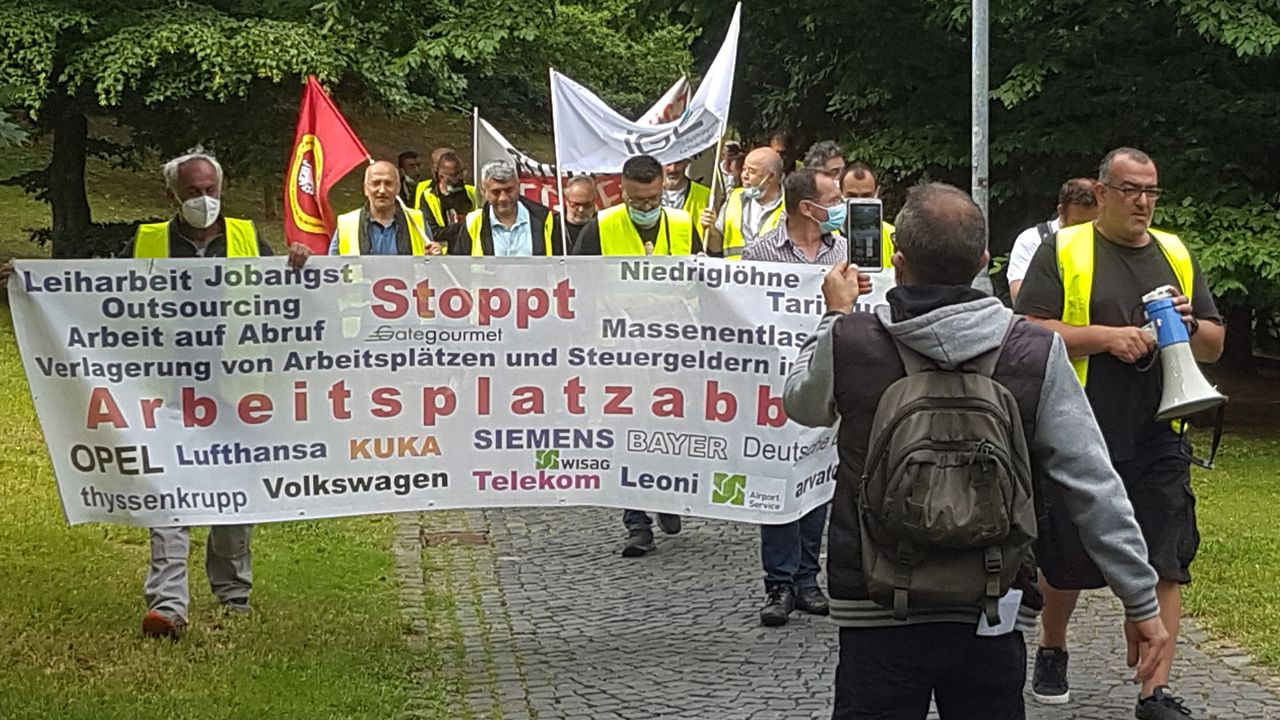 Auch Arbeiter anderer Flughafenbetriebe waren gekommen, um ihre Solidarität mit den Entlassenen auszudrücken, und jeder bezog sich auf diesen Slogan: „Heute wir – morgen ihr“, der durch den Hungerstreik der WISAG-Arbeiter im Februar und März 2021 am Terminal 1 bekannt geworden war.